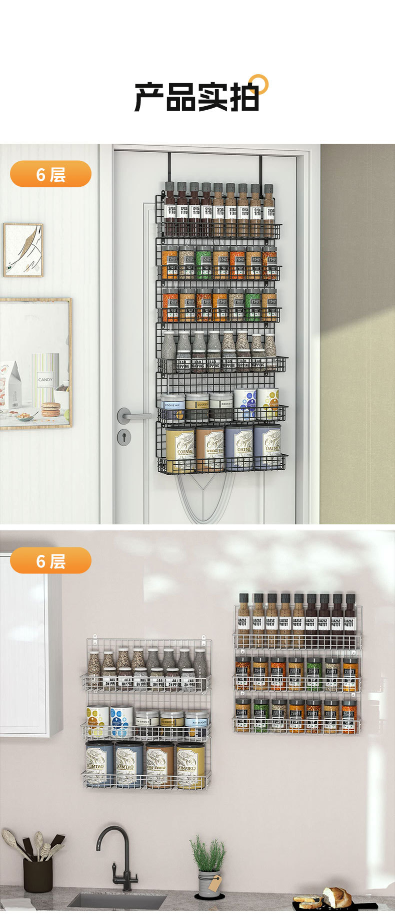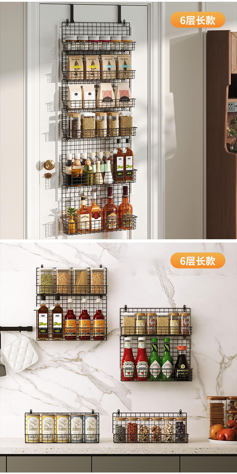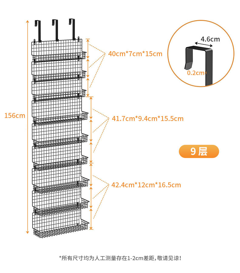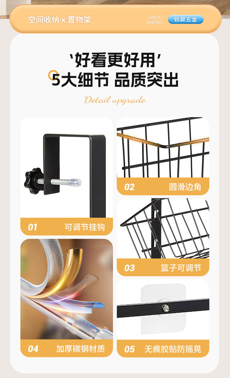 亚马逊厨房门后置物架壁挂卫生间多层储物架免打孔调料收纳挂篮