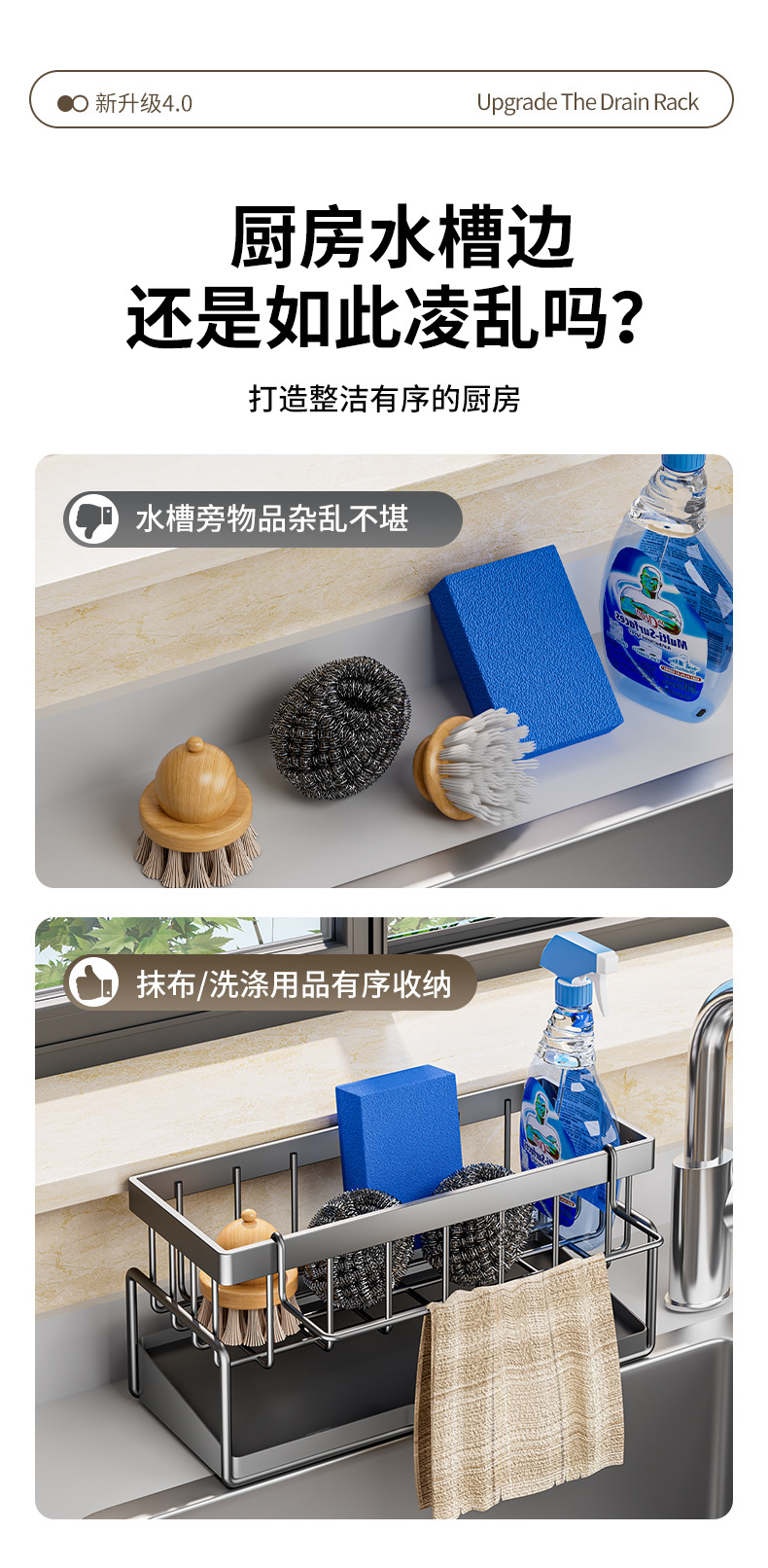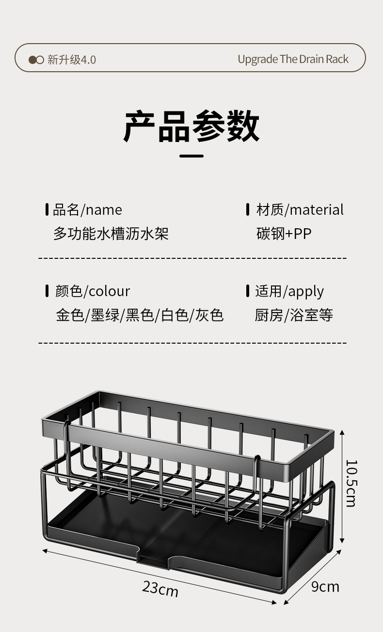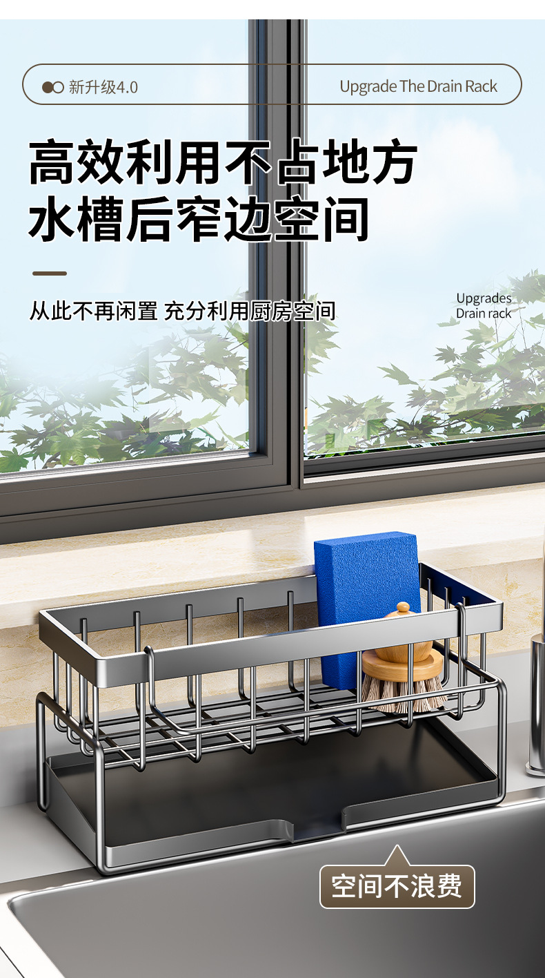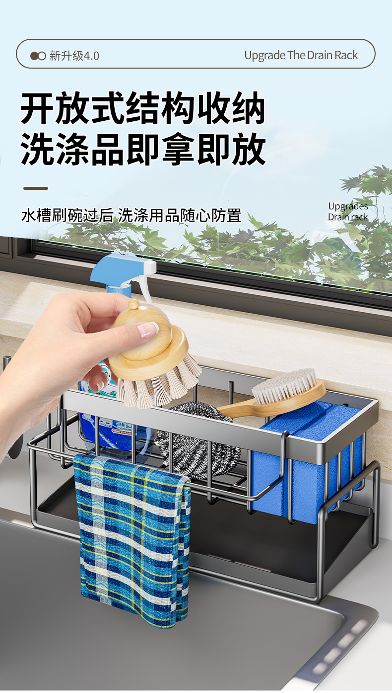 抹布架厨房置物架水槽沥水架沥水篮子台面多功能海绵洗洁精收纳架