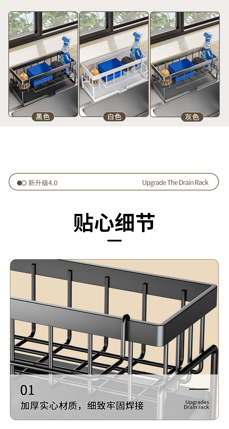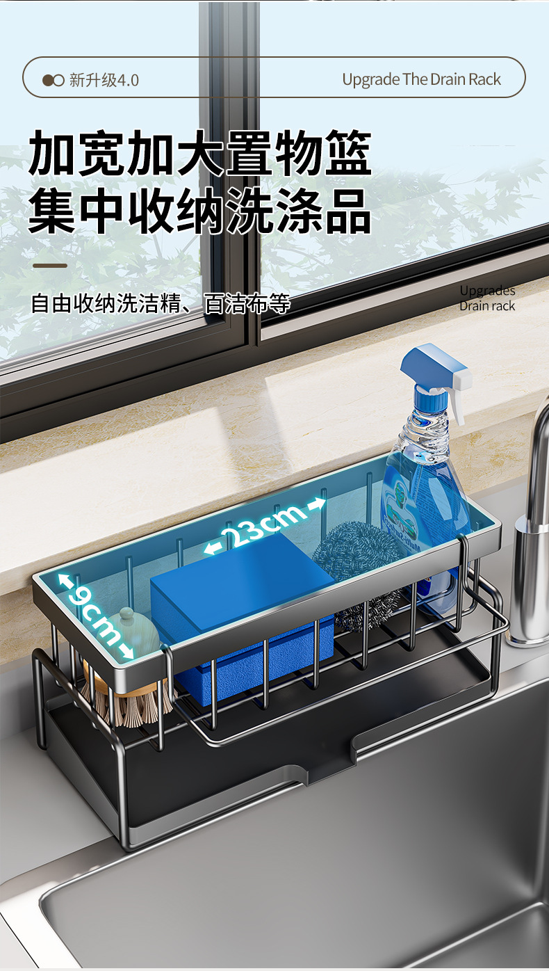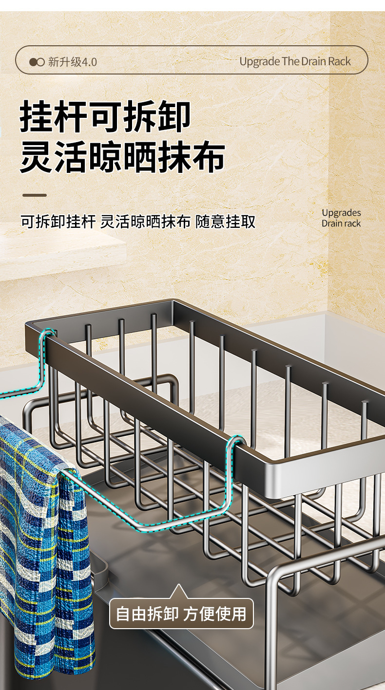 抹布架厨房置物架水槽沥水架沥水篮子台面多功能海绵洗洁精收纳架