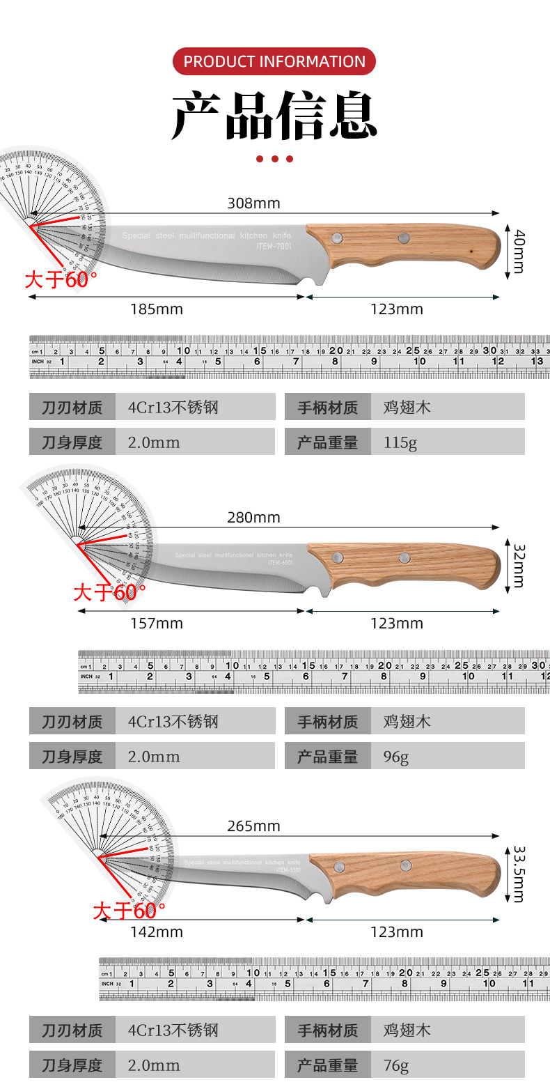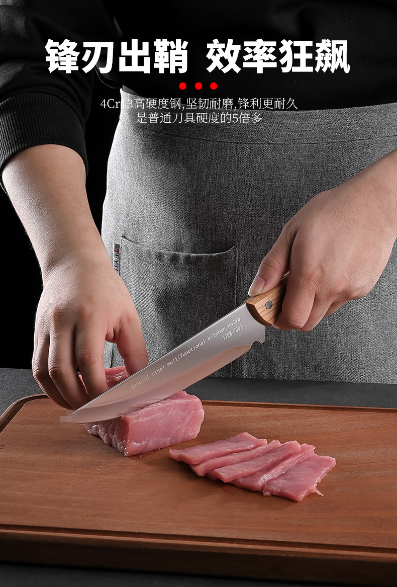 工厂现货跨境剔骨刀屠宰刀不锈钢尖刀厨师专用刀木柄水果切片刀具