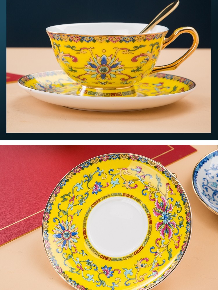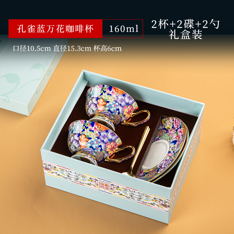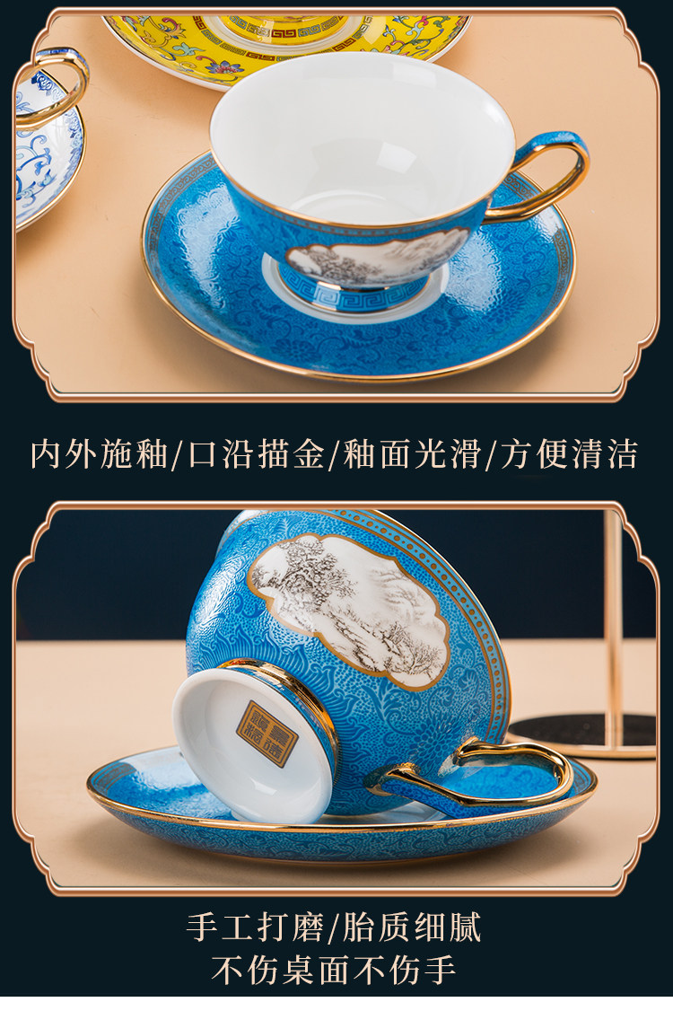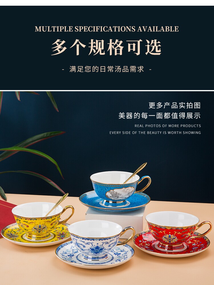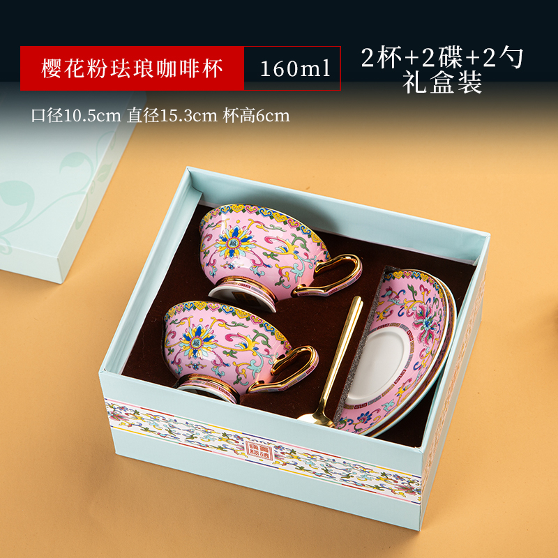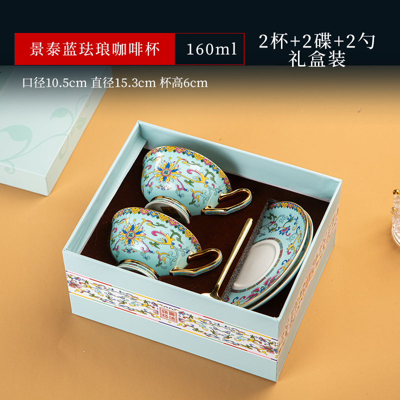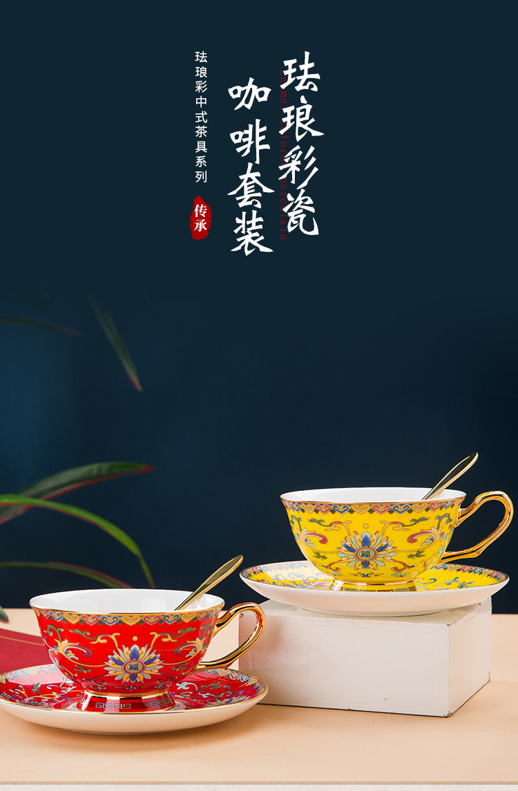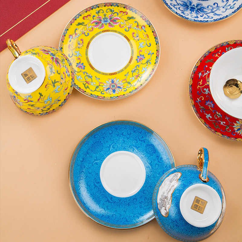 景德镇珐琅彩骨瓷咖啡杯牛奶杯套装中式家用高档礼品定制水杯茶杯