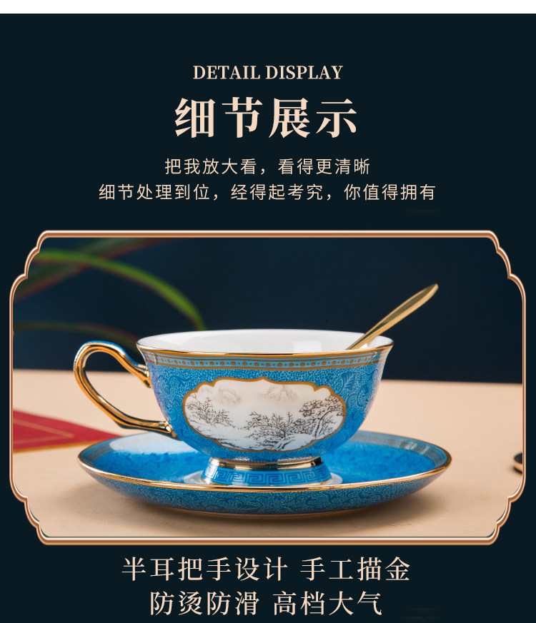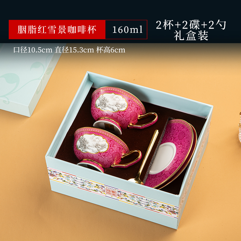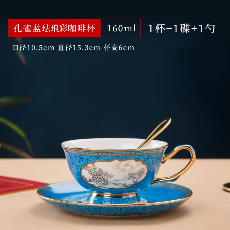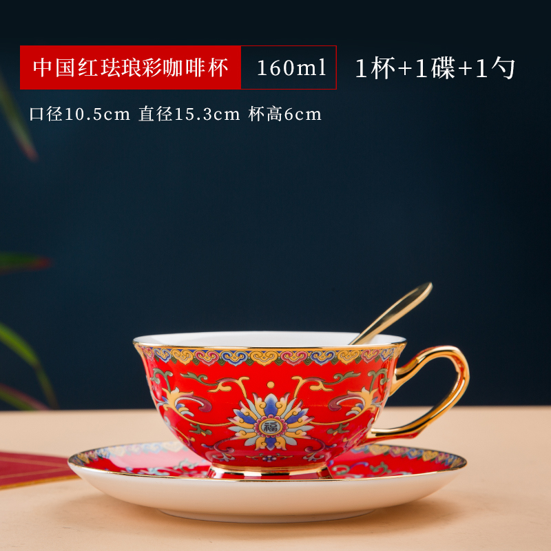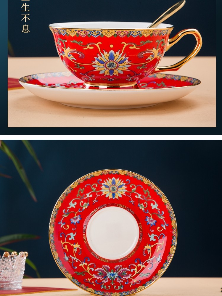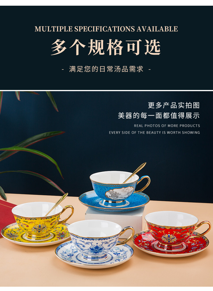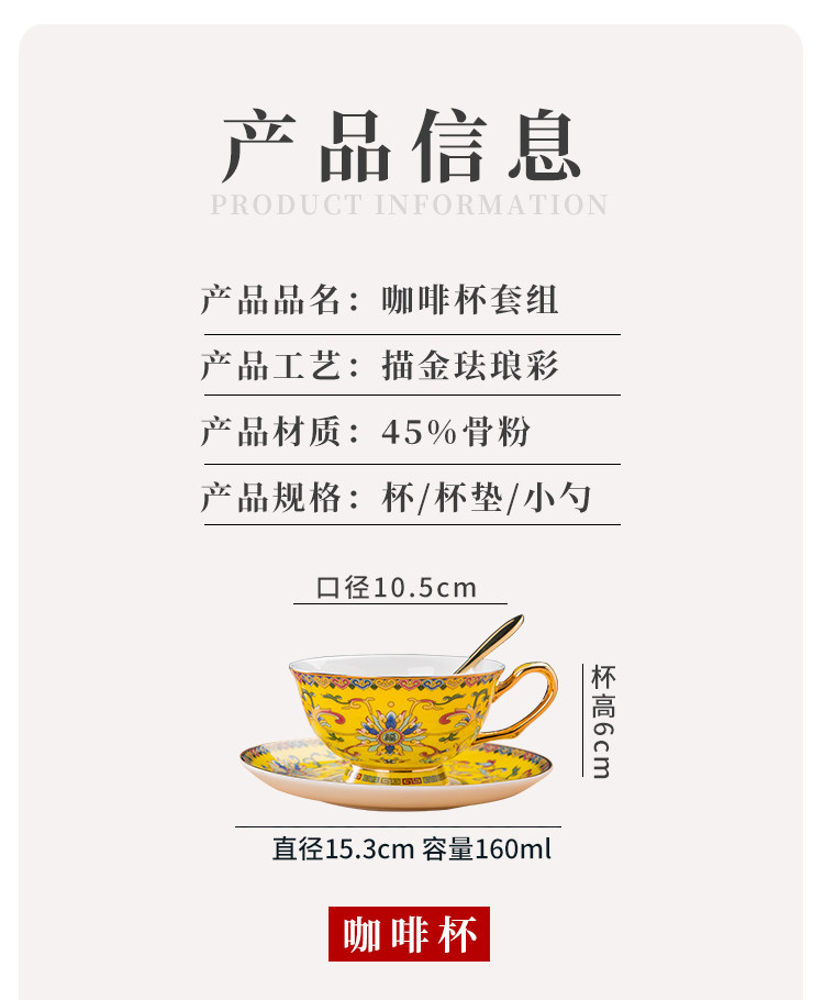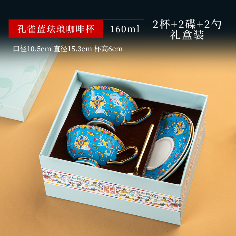 景德镇珐琅彩骨瓷咖啡杯牛奶杯套装中式家用高档礼品定制水杯茶杯