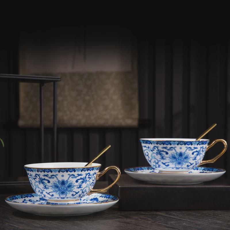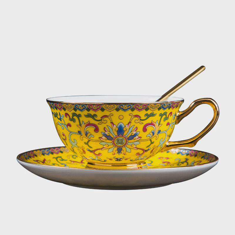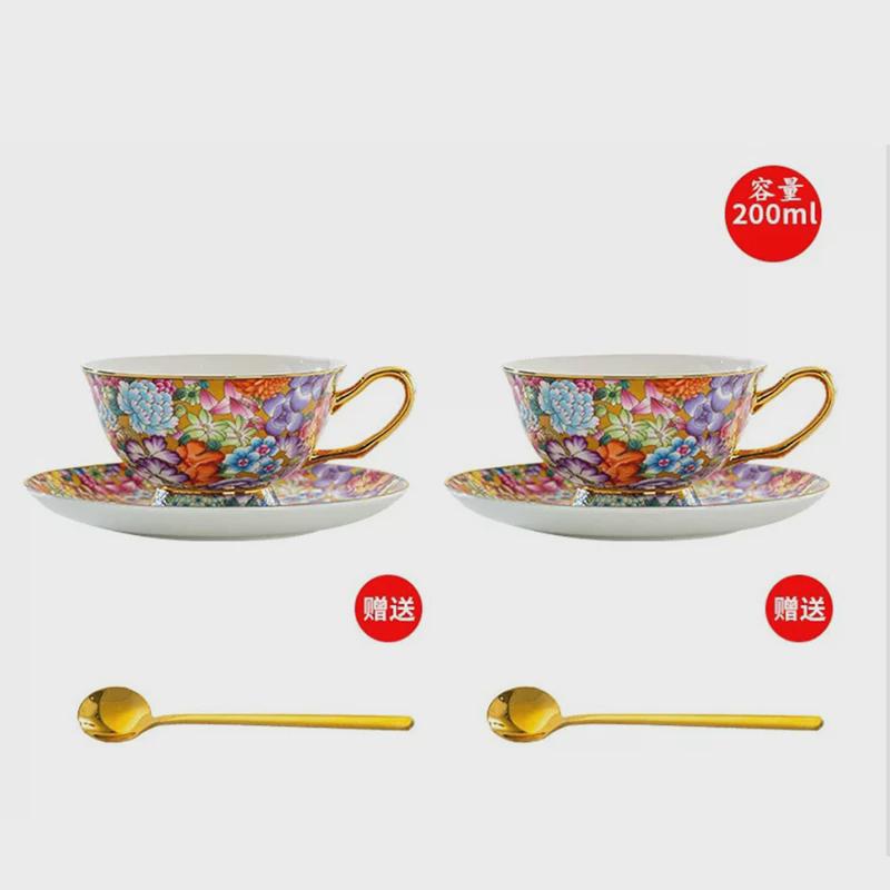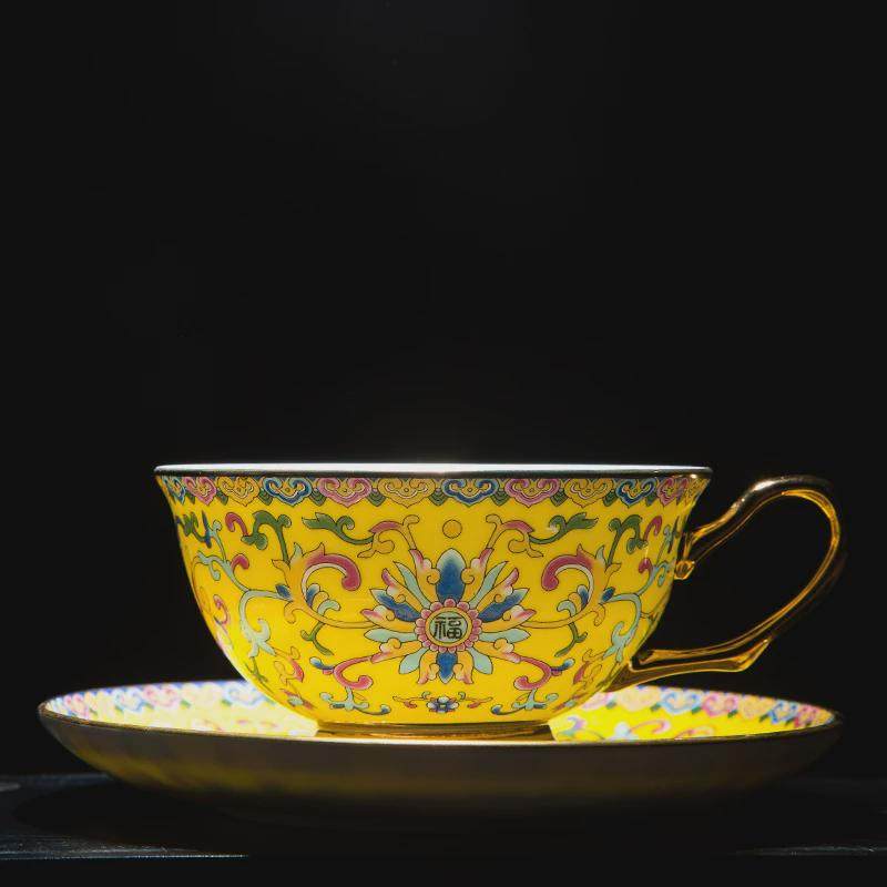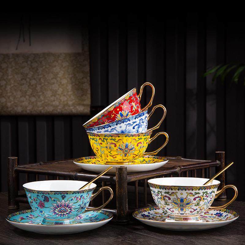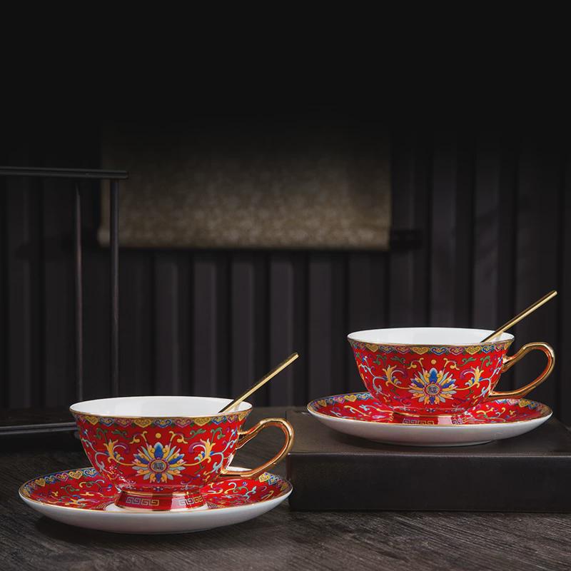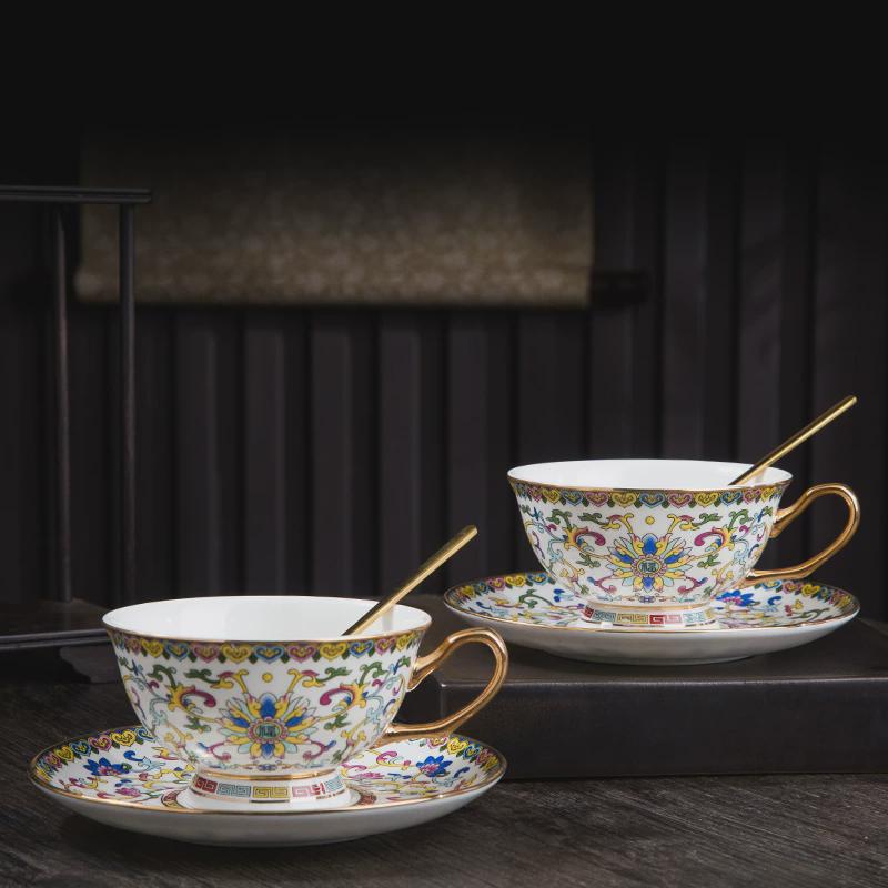 金边珐琅彩咖啡杯宫廷风牛奶午茶骨瓷中式礼品盒情侣杯景德镇陶瓷