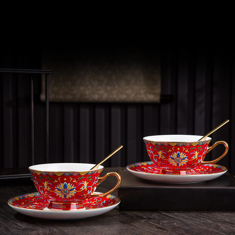 festive red enamel coffee cup [a pair] golden edge superior(喜庆红珐琅彩咖啡杯【一对】 金边优级) USD $28.58 200 piece available