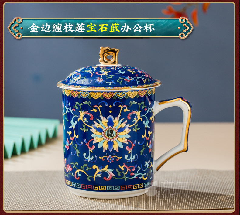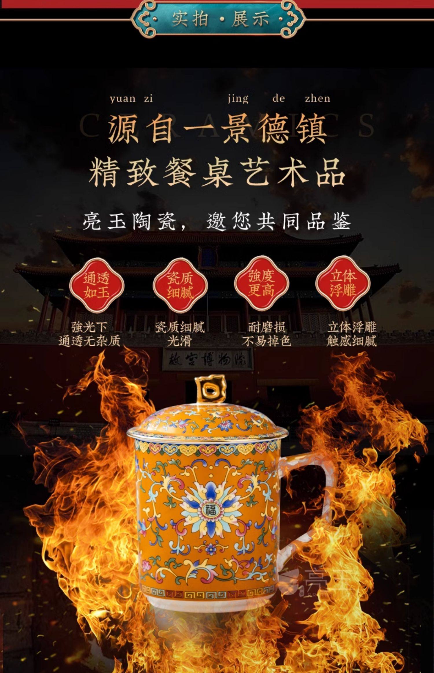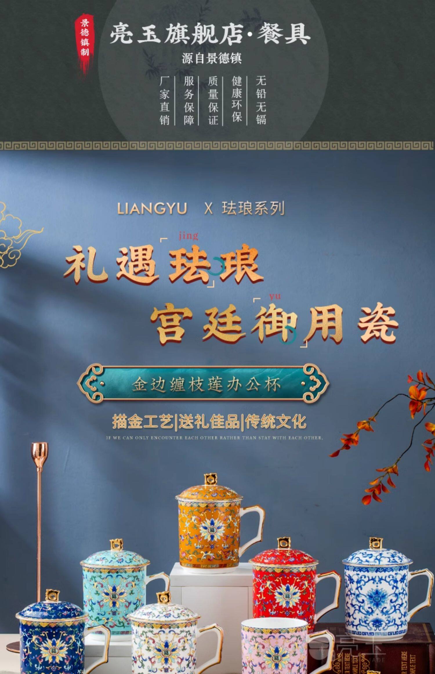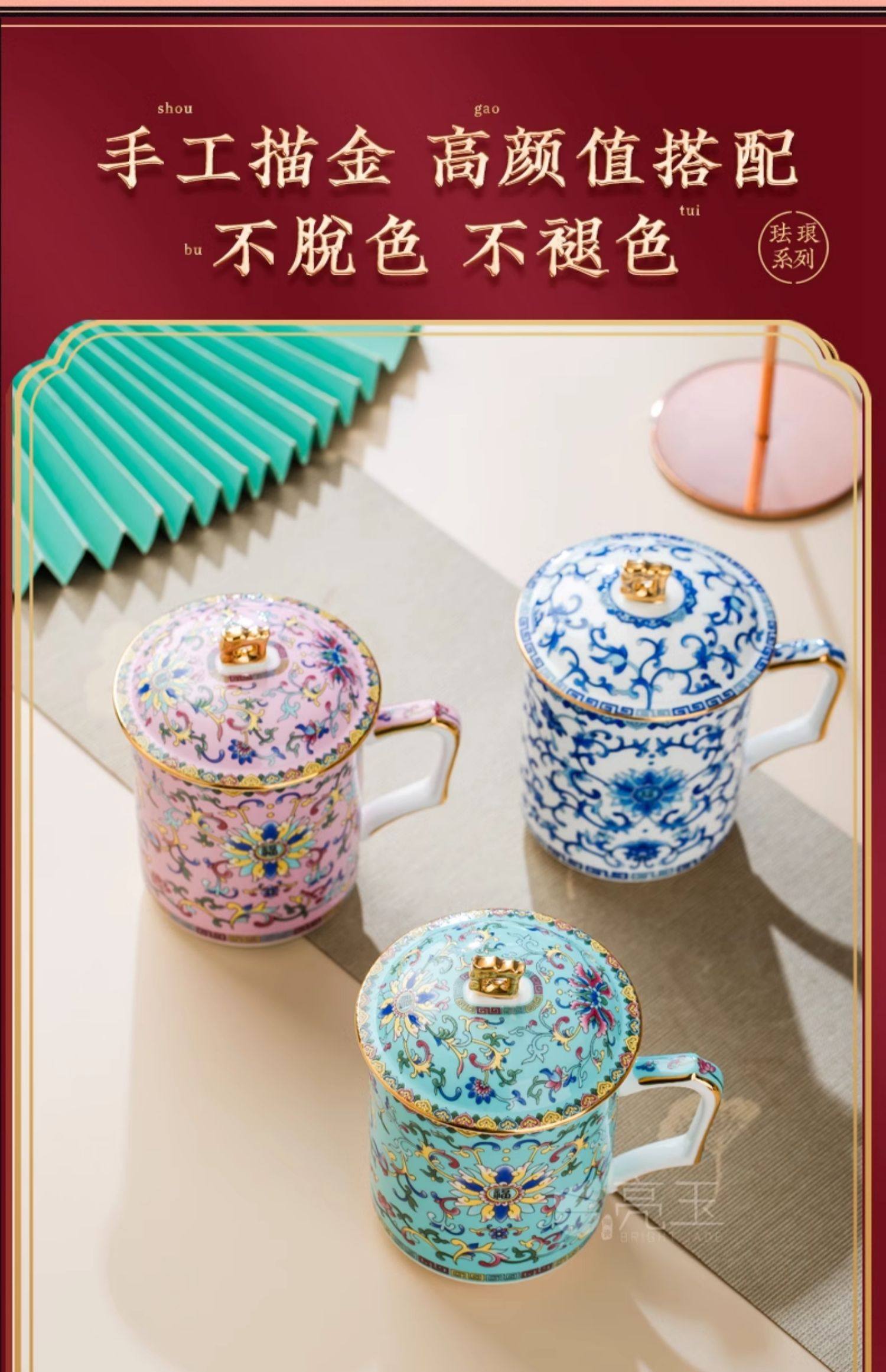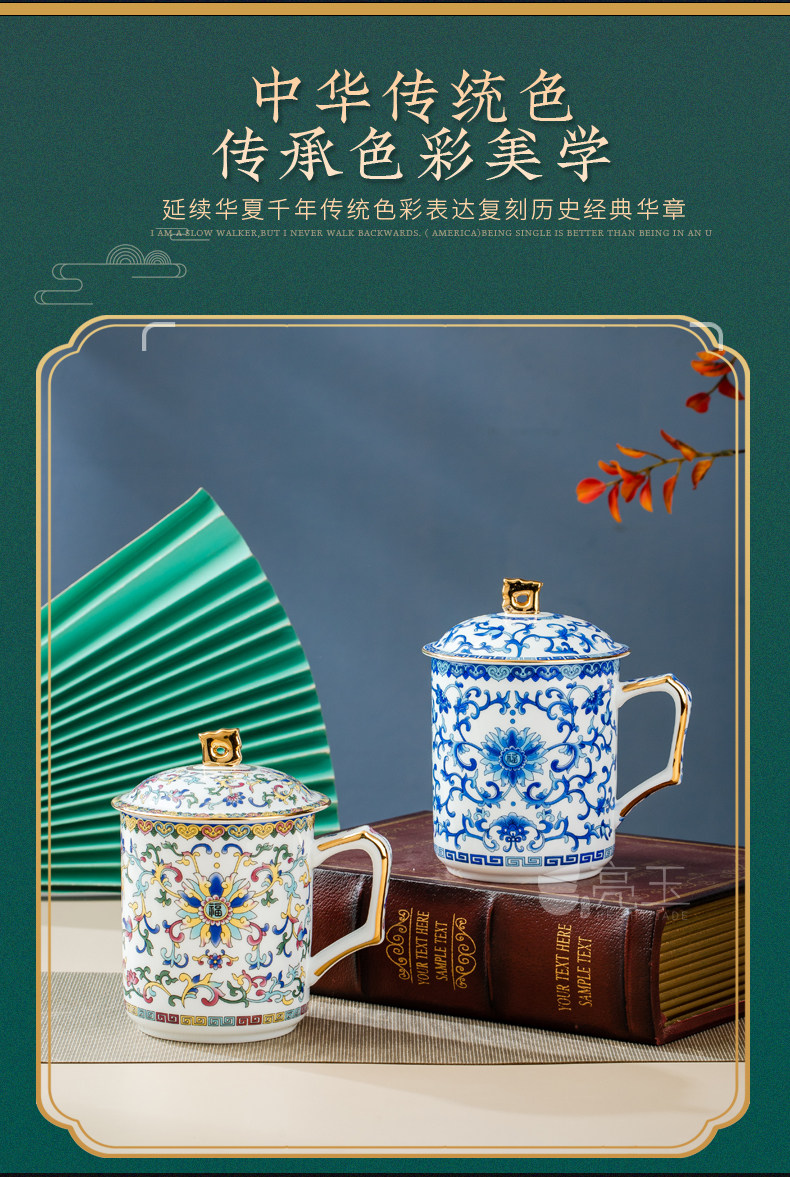 景德镇中式青花珐琅杯陶瓷家用泡茶杯带盖骨瓷水杯办公杯会议杯子
