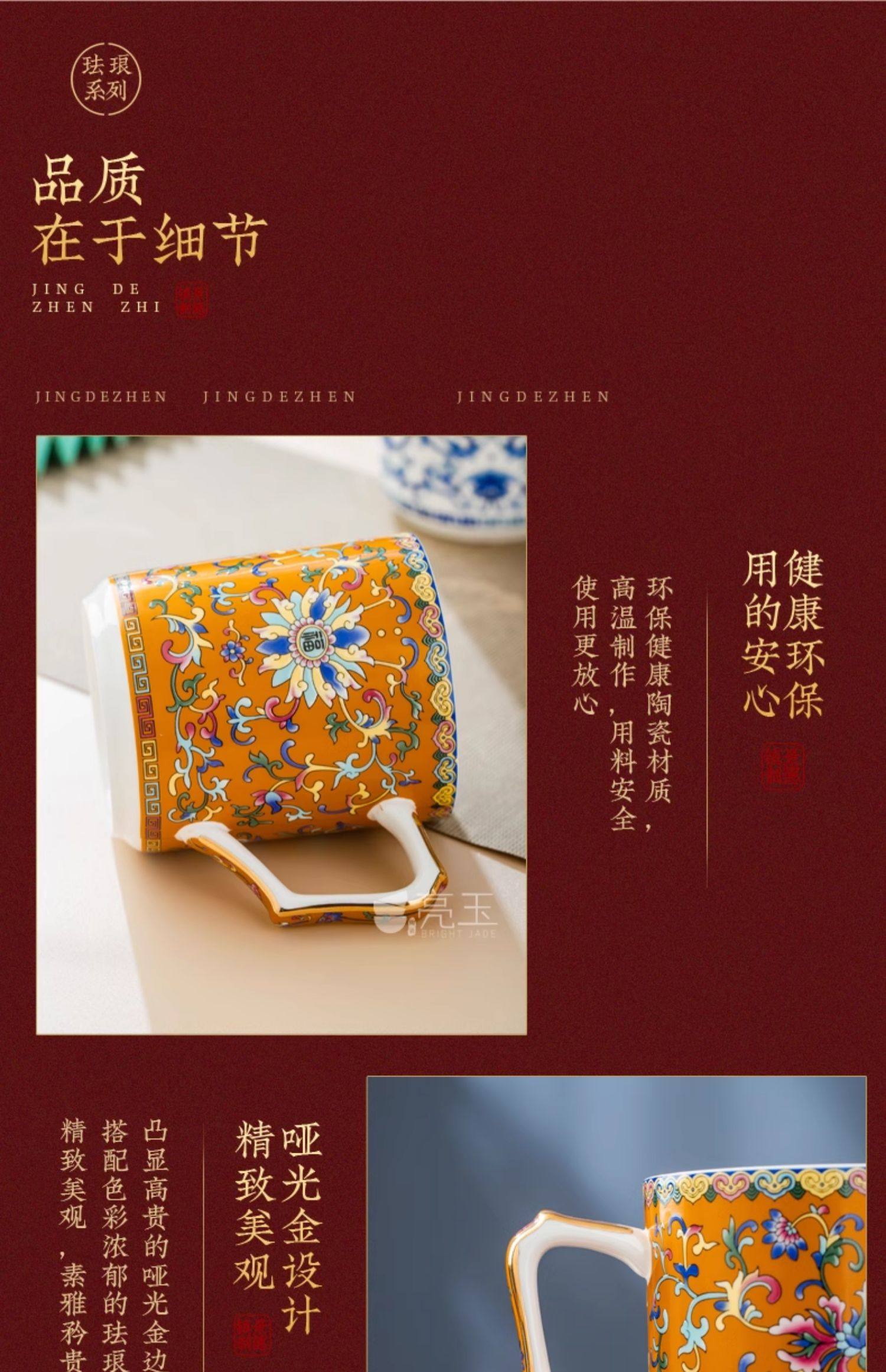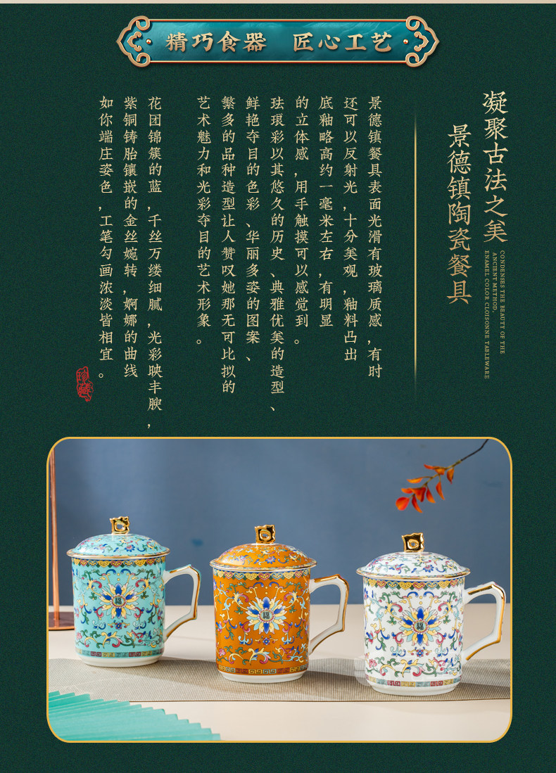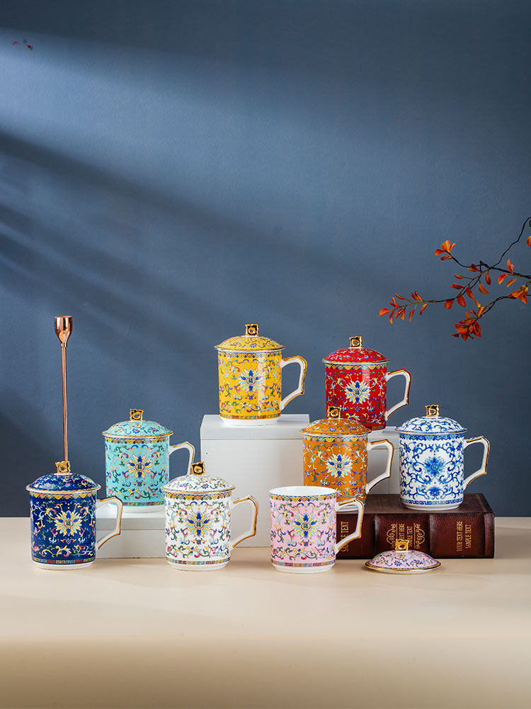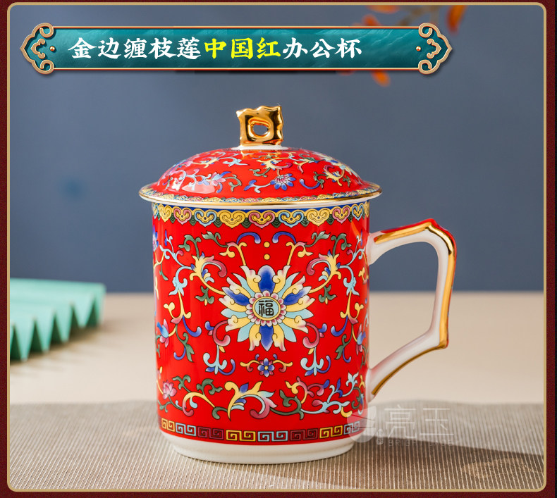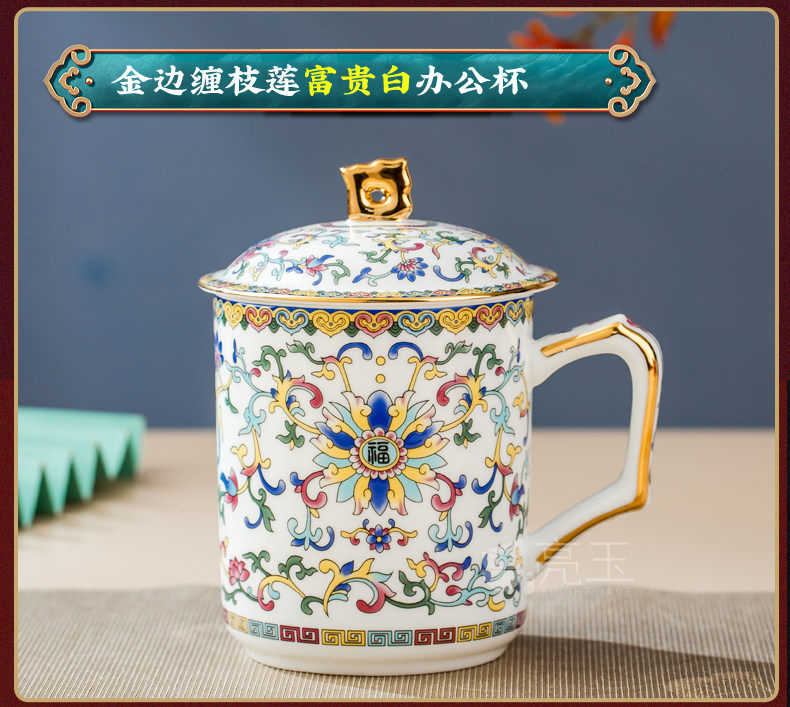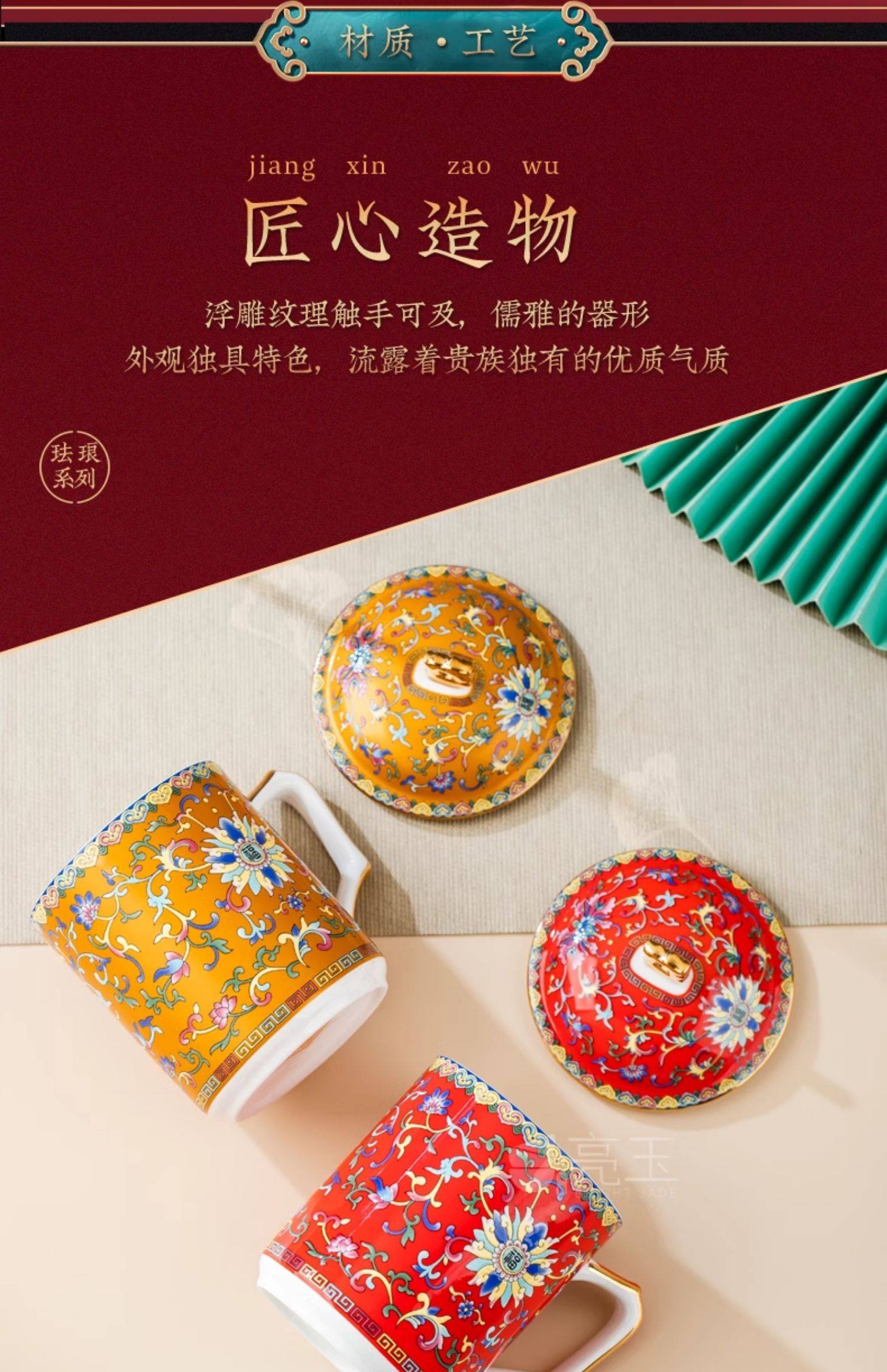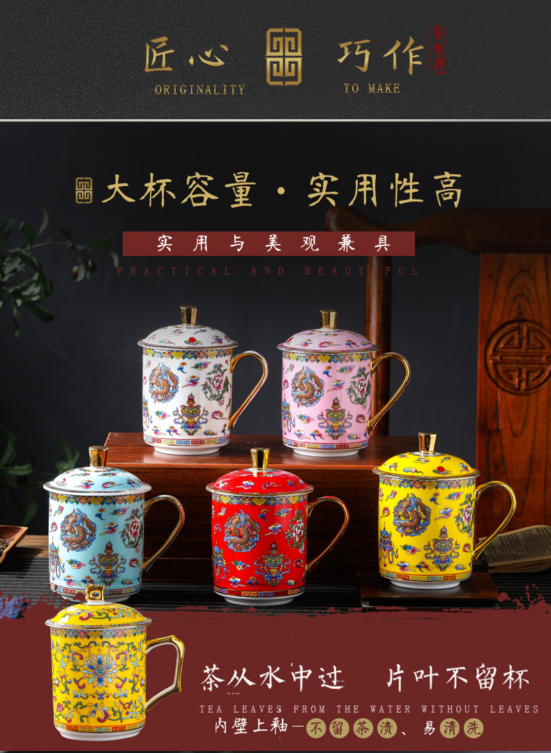 景德镇中式青花珐琅杯陶瓷家用泡茶杯带盖骨瓷水杯办公杯会议杯子