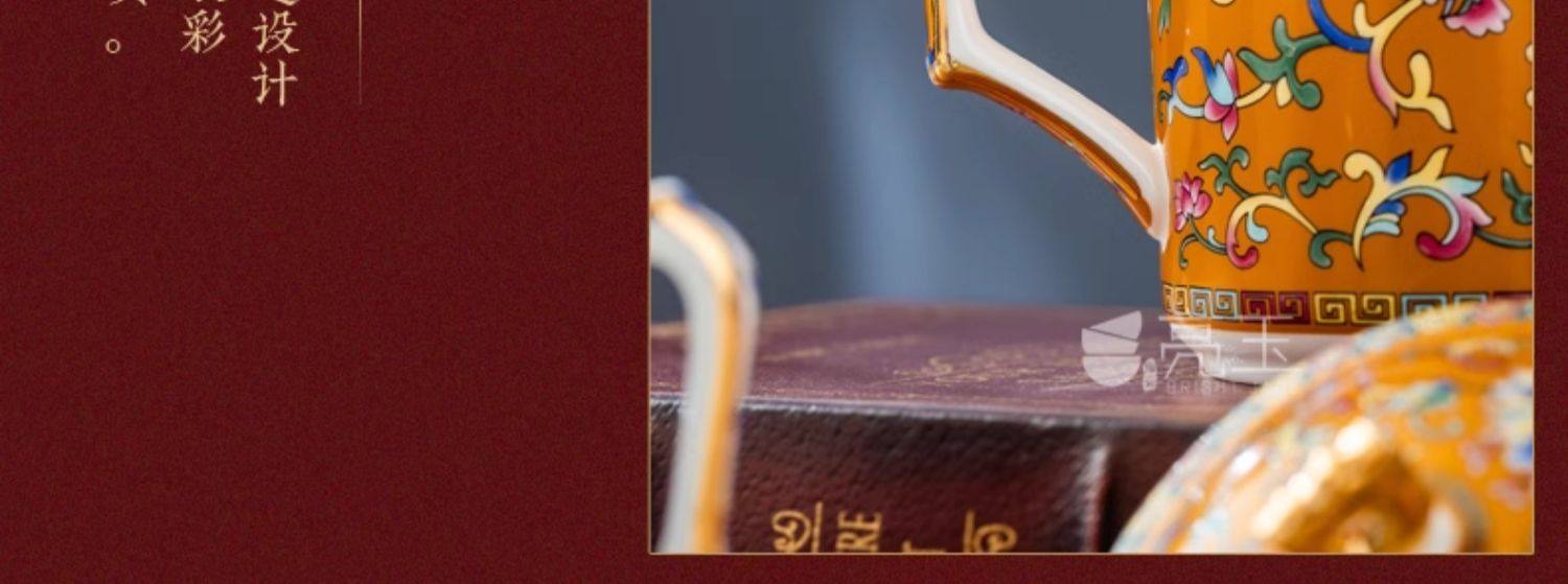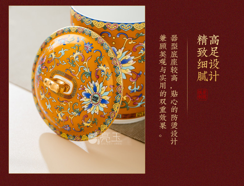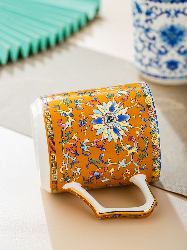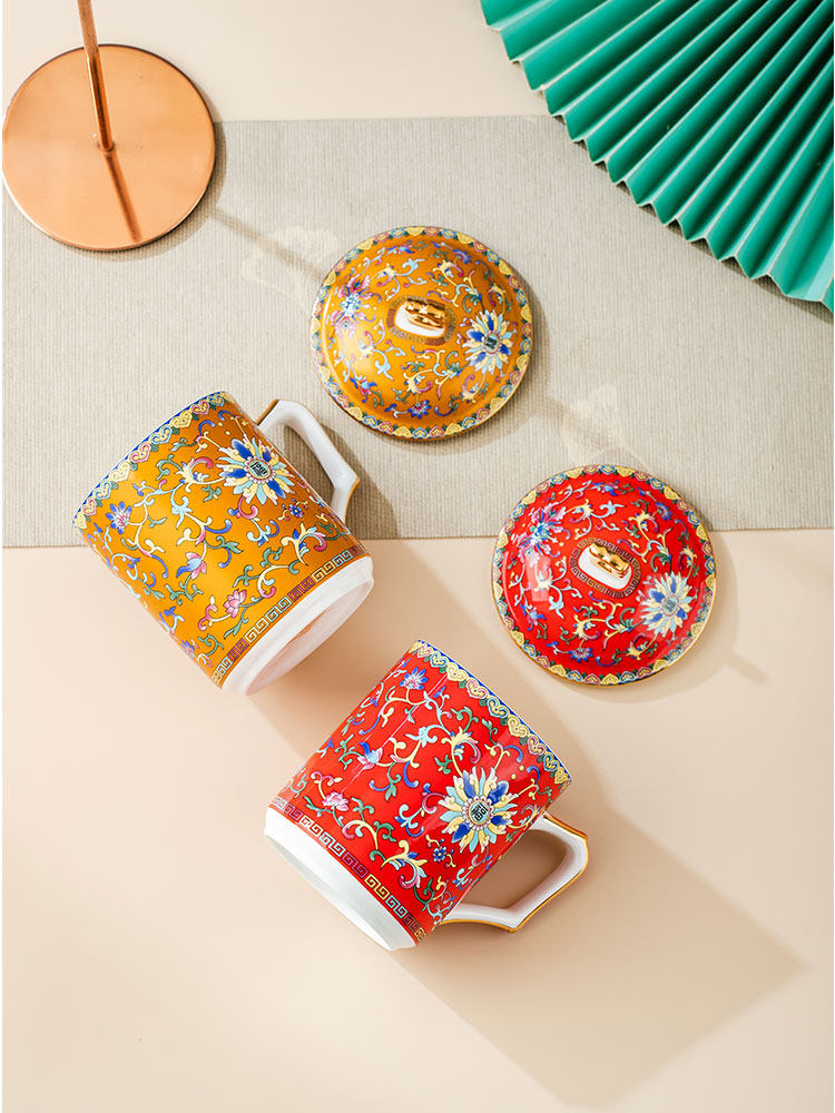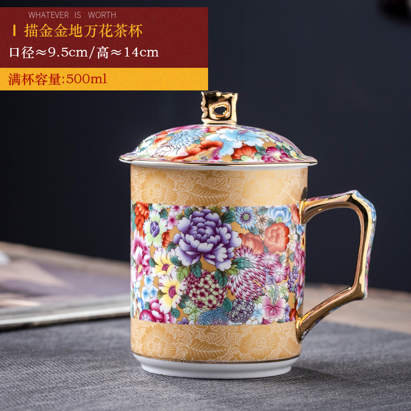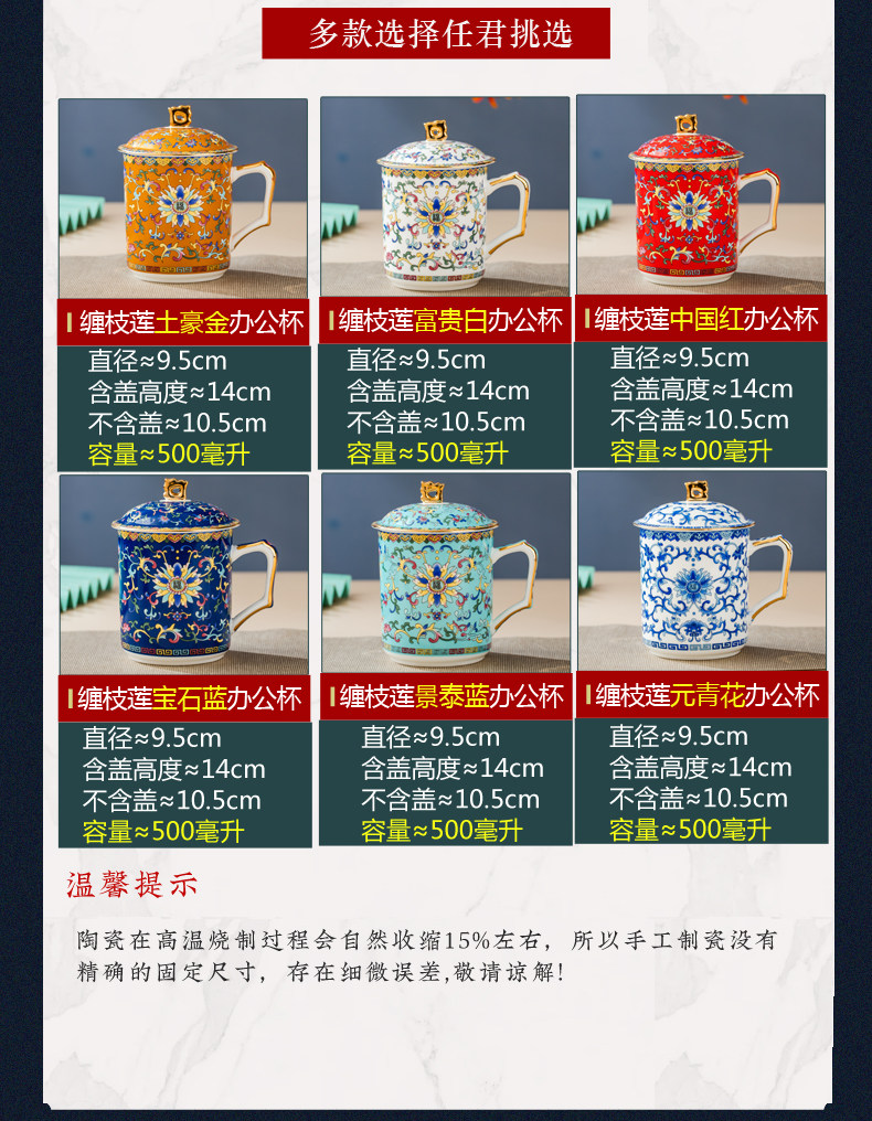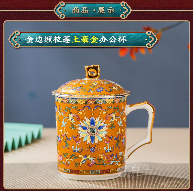 景德镇中式青花珐琅杯陶瓷家用泡茶杯带盖骨瓷水杯办公杯会议杯子