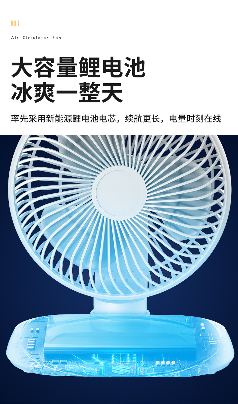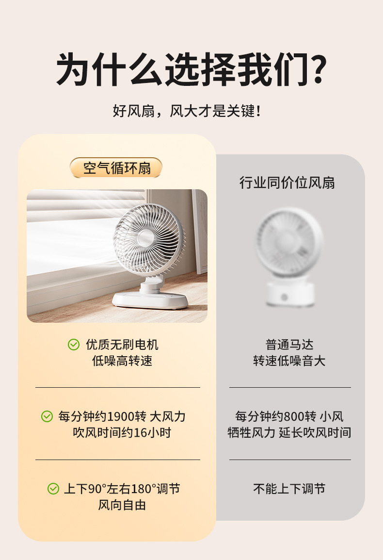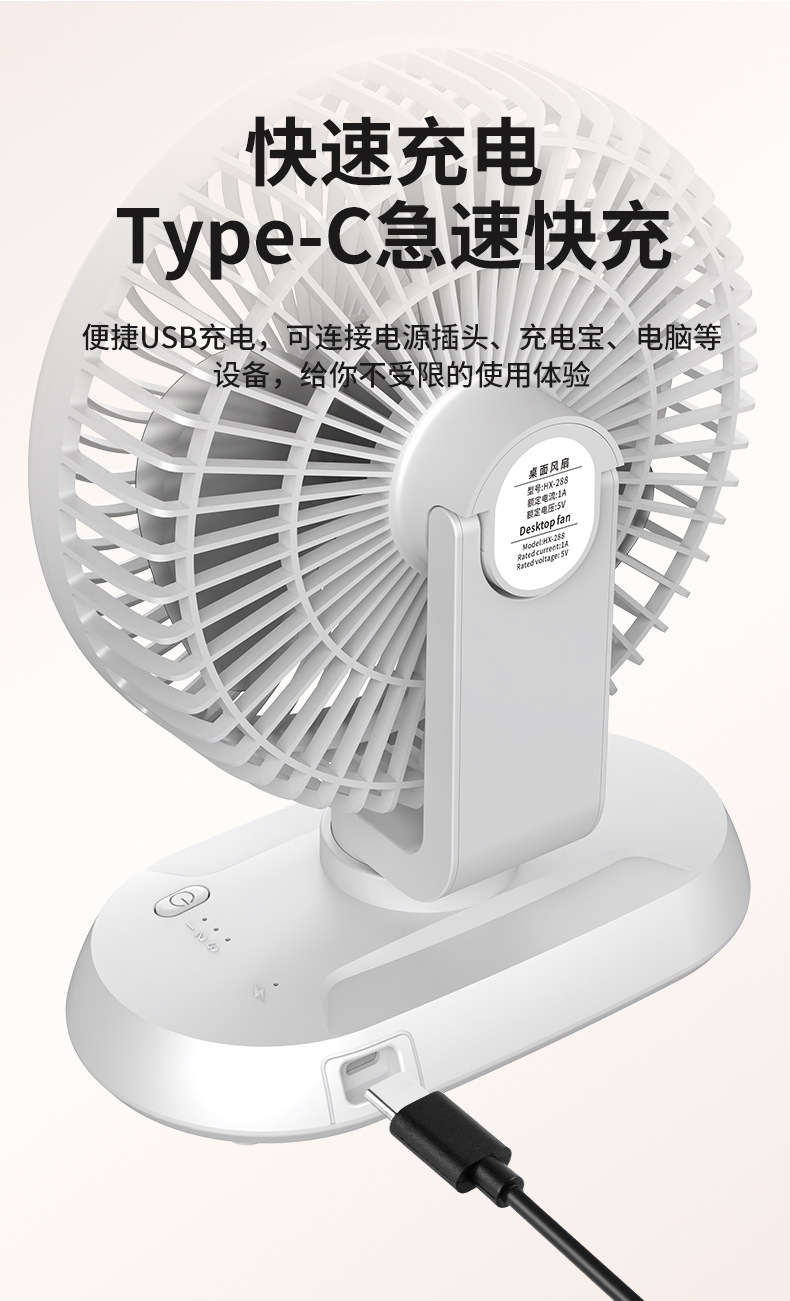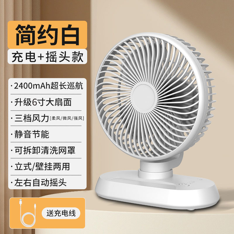 电风扇家用桌面摇头循环扇三合一usb充电台式挂式办公静音落地扇