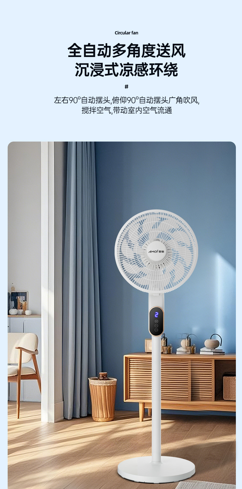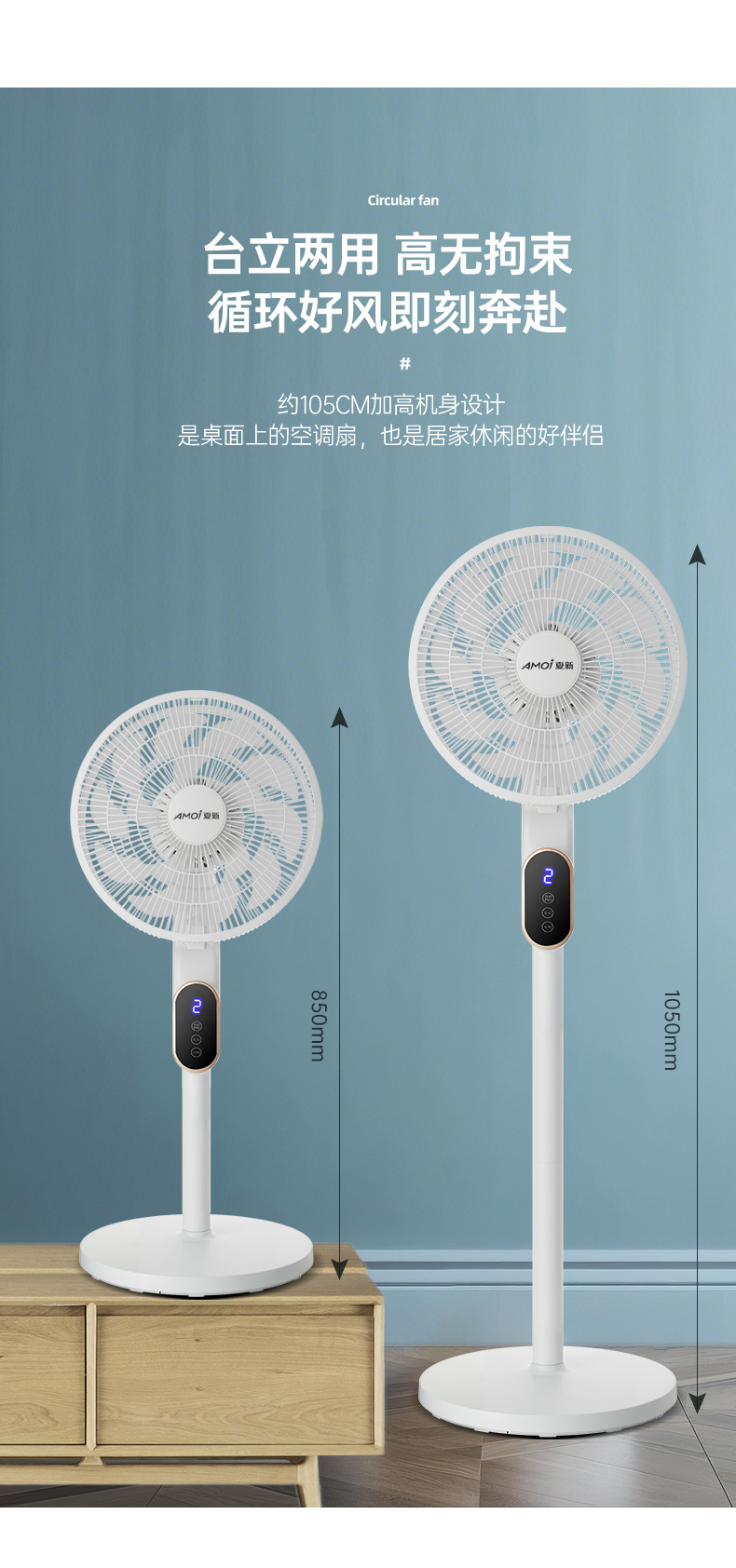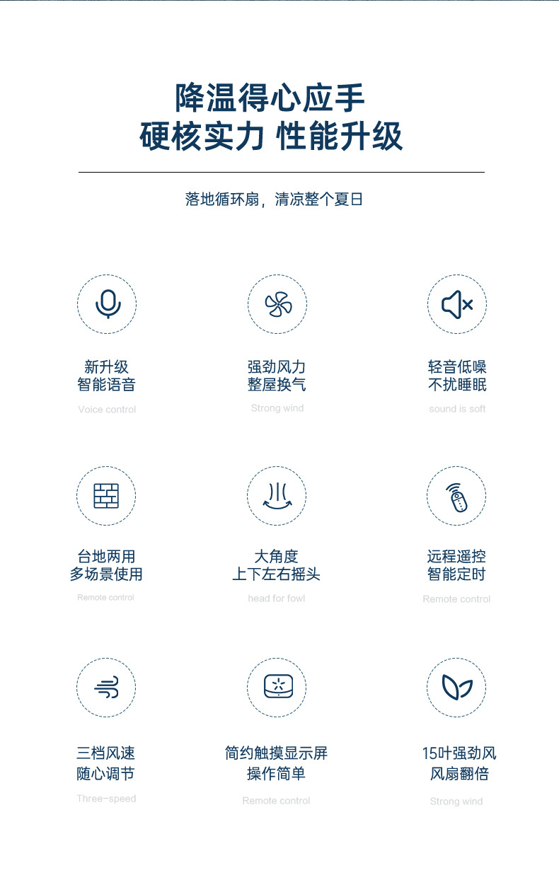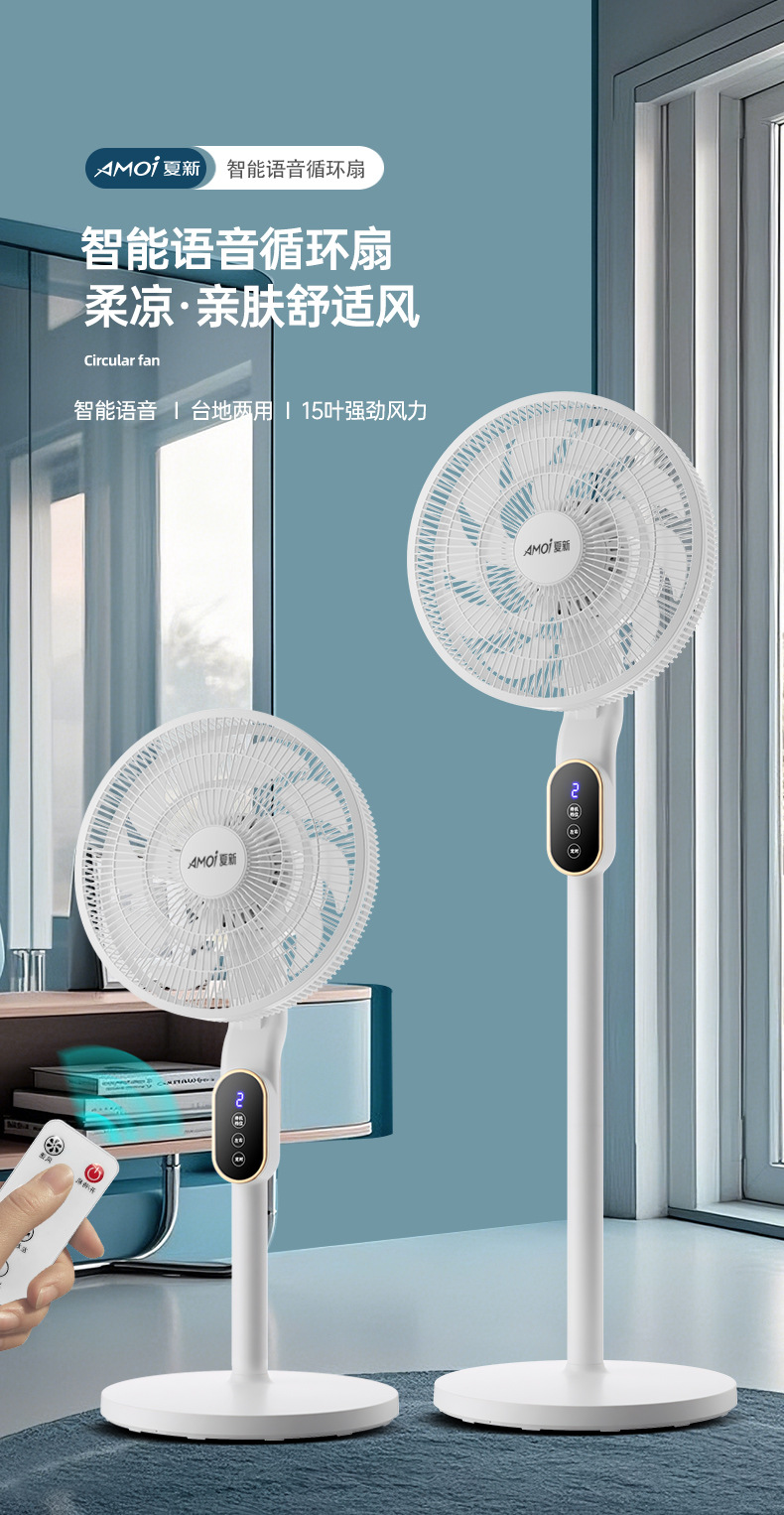 新款风扇落地扇办公室宿舍台立两用循环扇夏新语音电风扇家用落地
