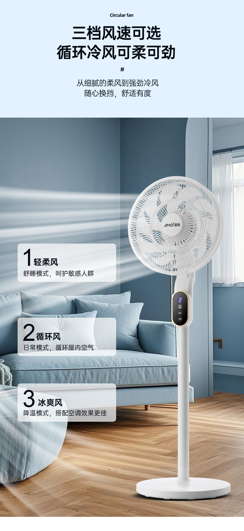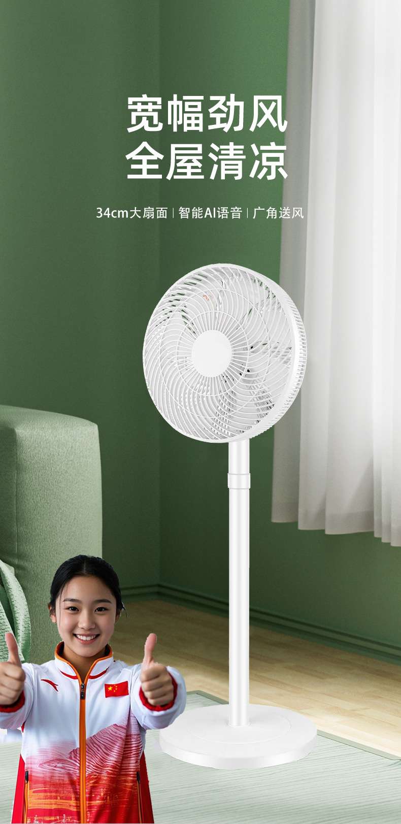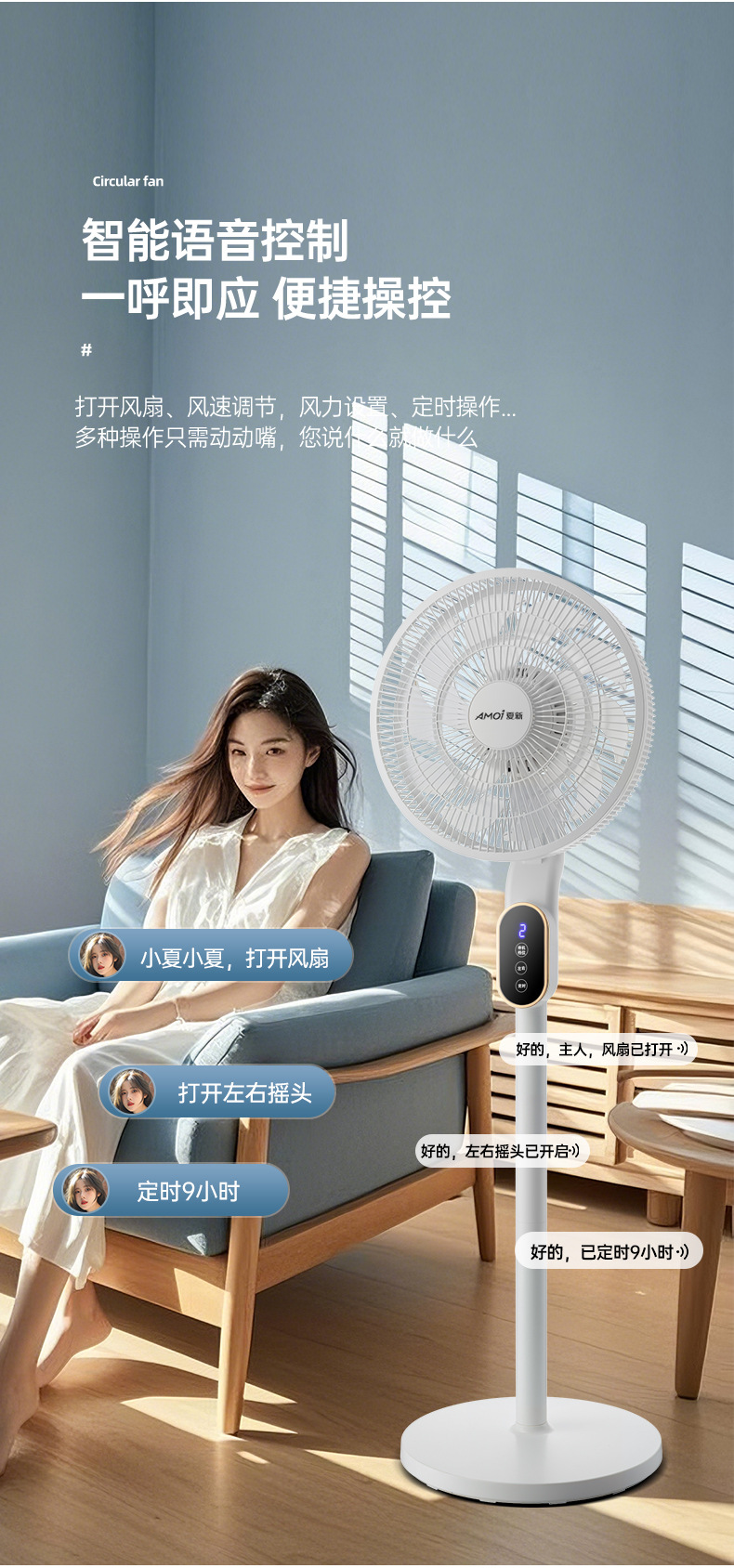 新款风扇落地扇办公室宿舍台立两用循环扇夏新语音电风扇家用落地