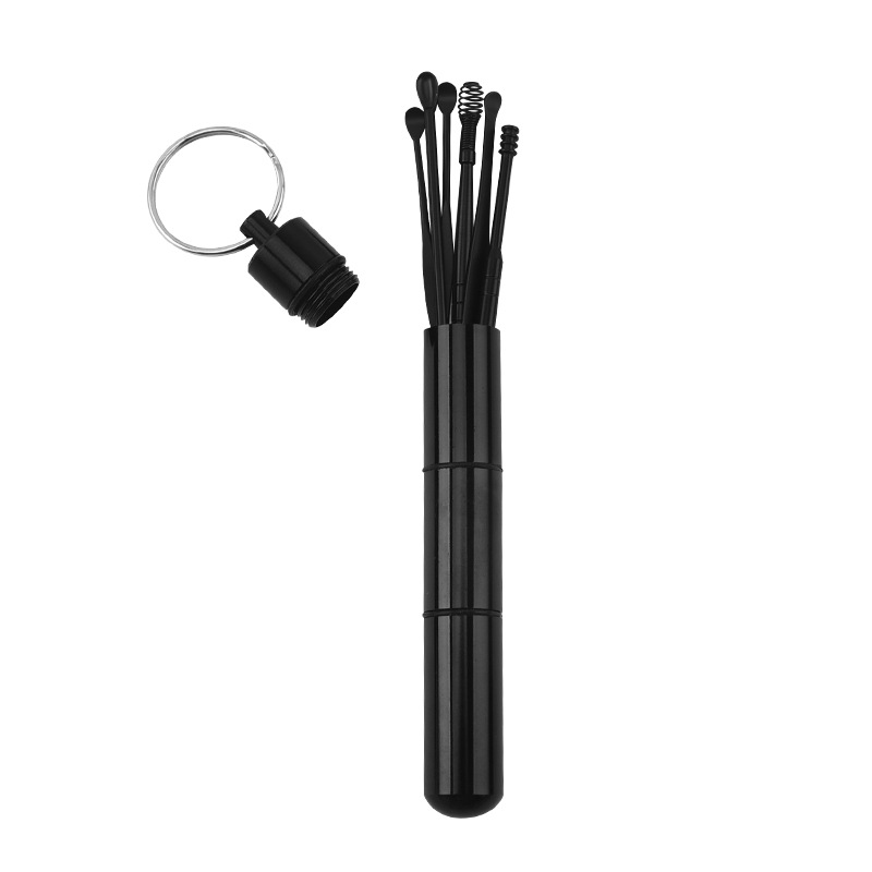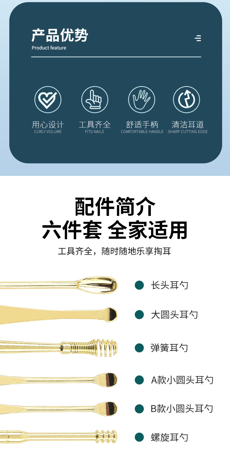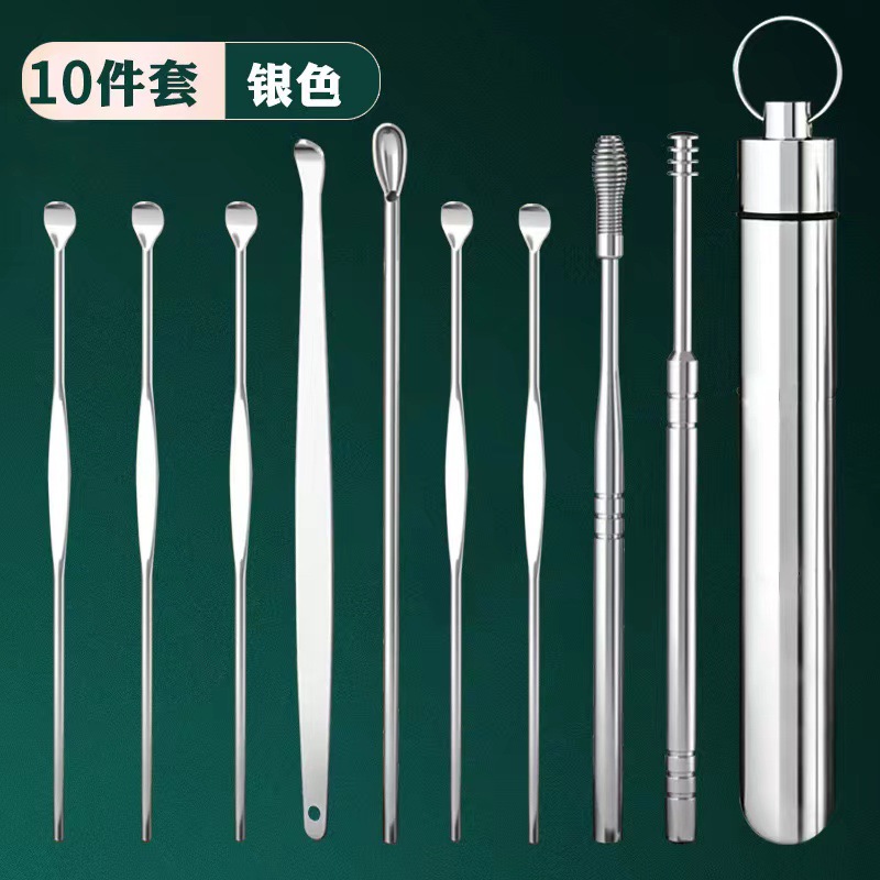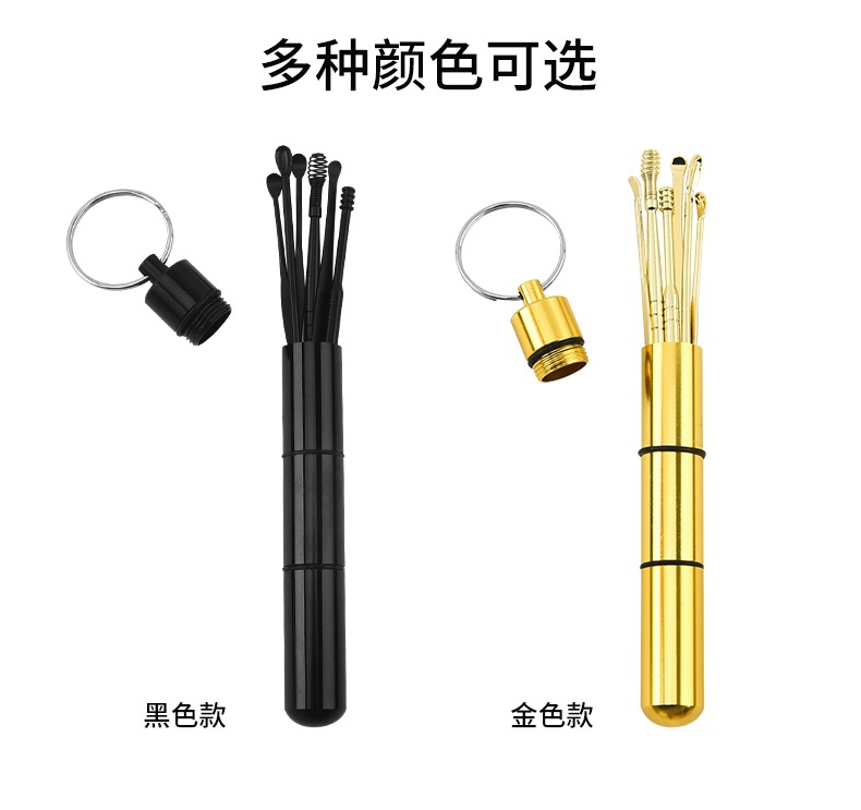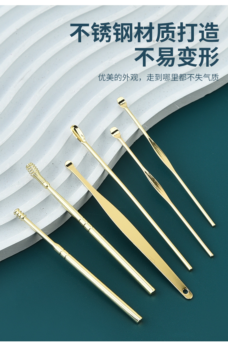 不锈钢掏耳勺6件套家用挖耳朵采耳清洁工具套装便携螺旋弹簧耳勺