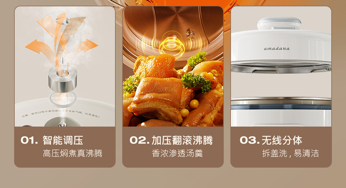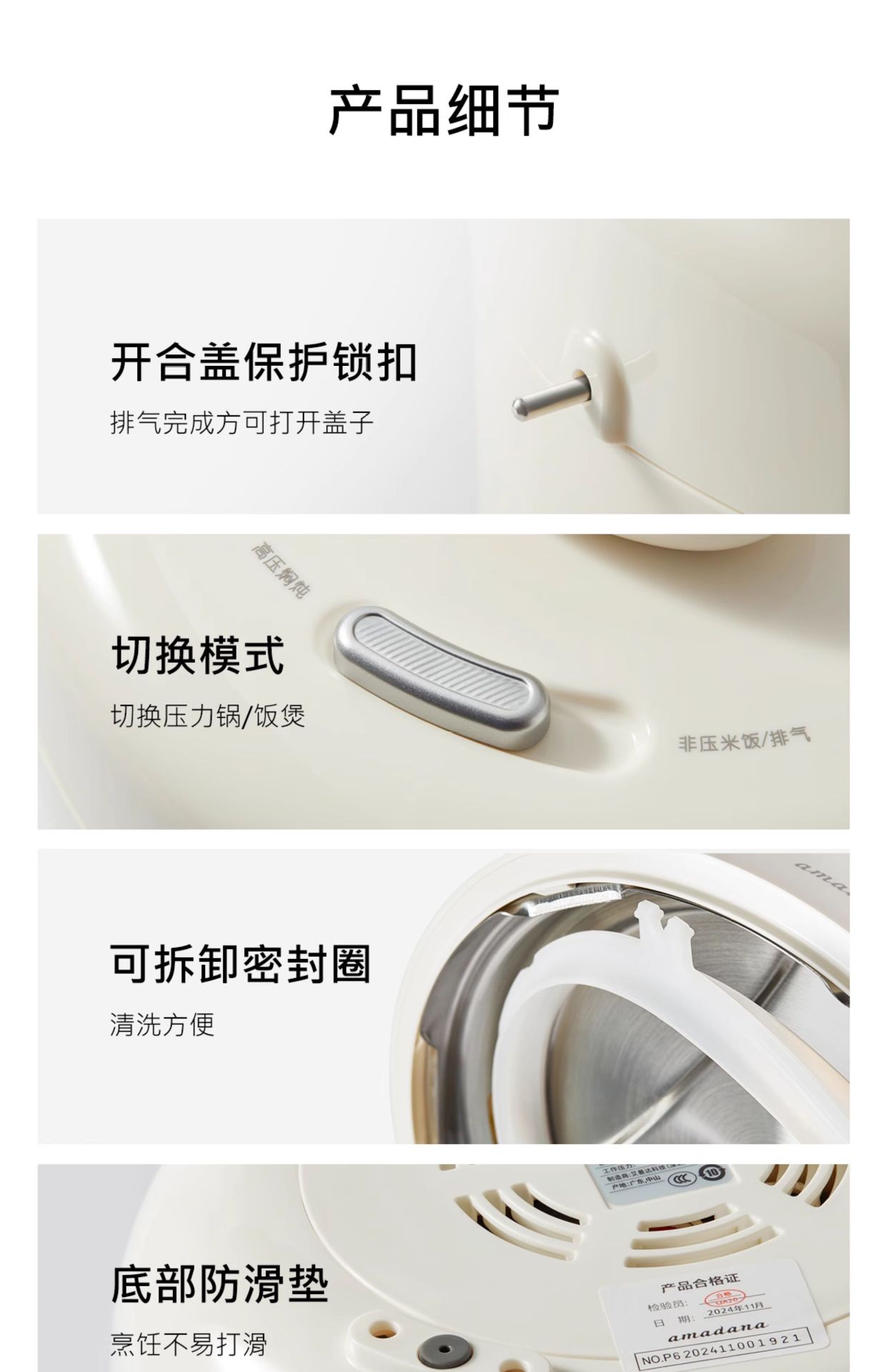 日本amadana艾曼达多功能电压力锅家用饭煲高压锅小型自动排气P6