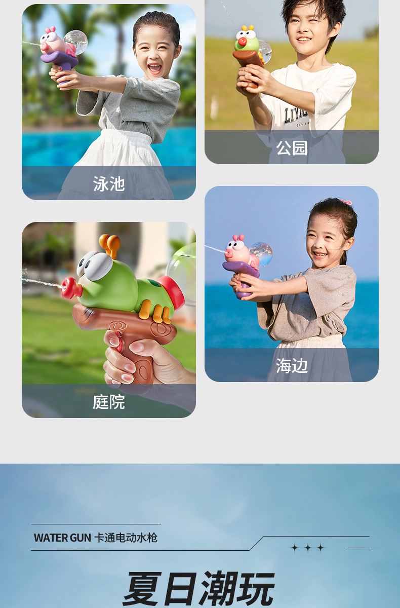 男女孩戏水可爱蚂蚁电动按压水枪沙滩打水仗泳池戏水漂流儿童水枪