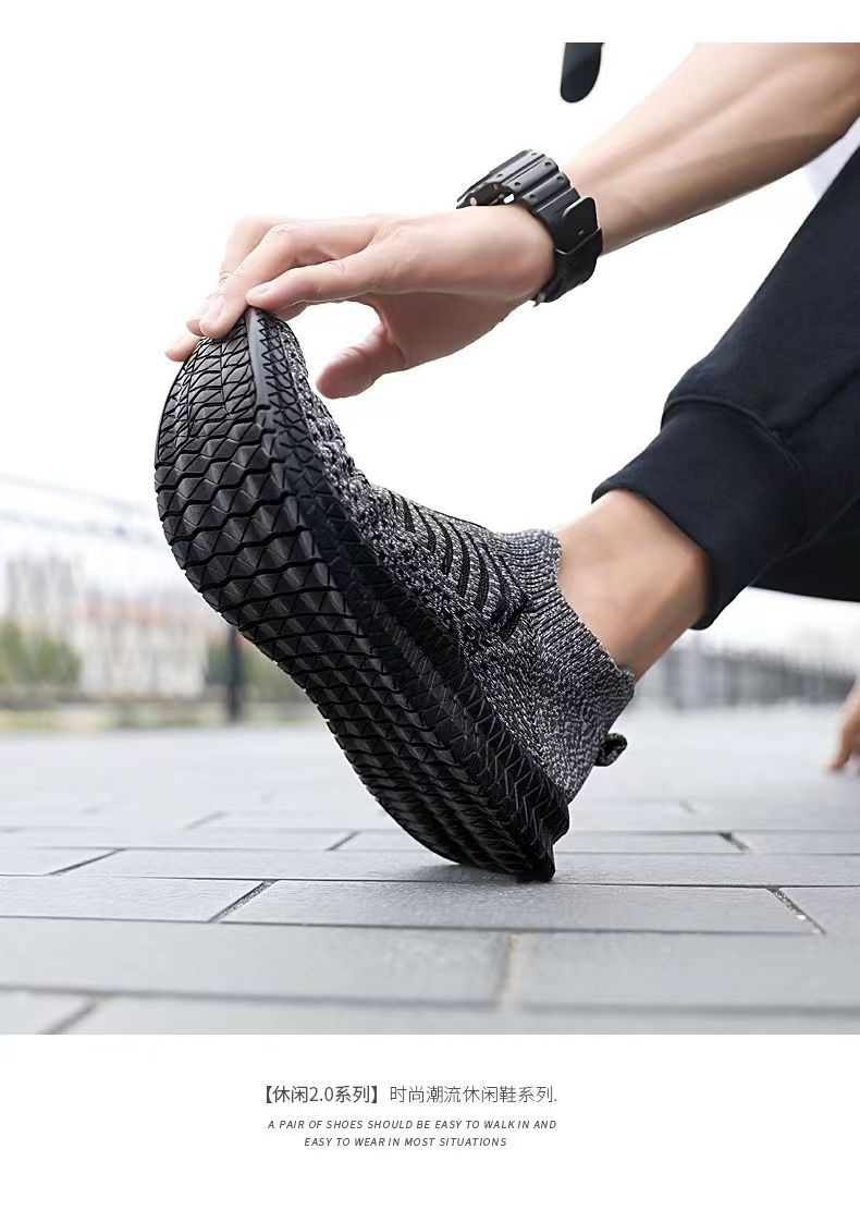 新款飞织休闲运动鞋男软底软面网孔透气跑步鞋外贸跨境批发椰子鞋
