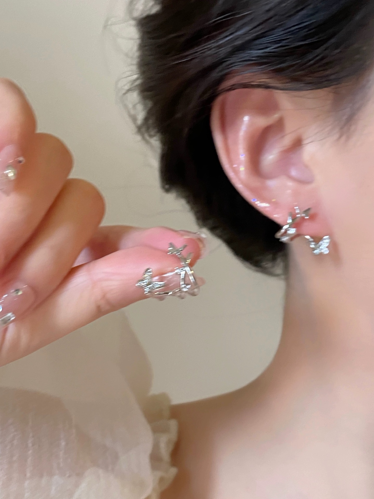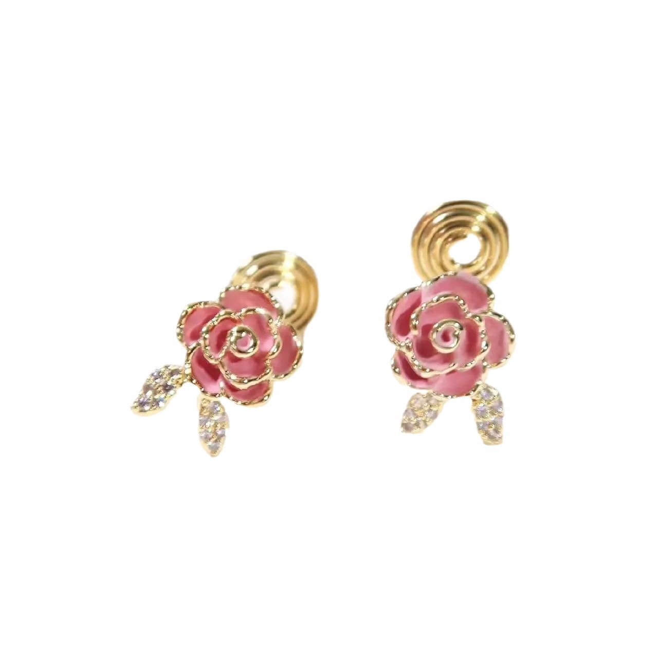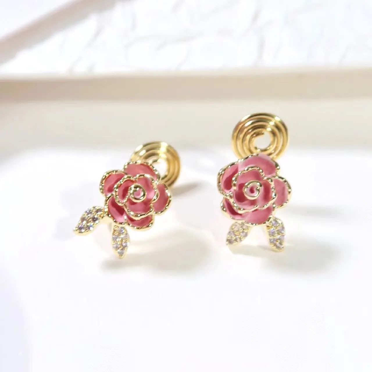 轻奢甜美风粉色花朵耳夹2023年新款小众高级感精致蚊香盘耳夹饰品