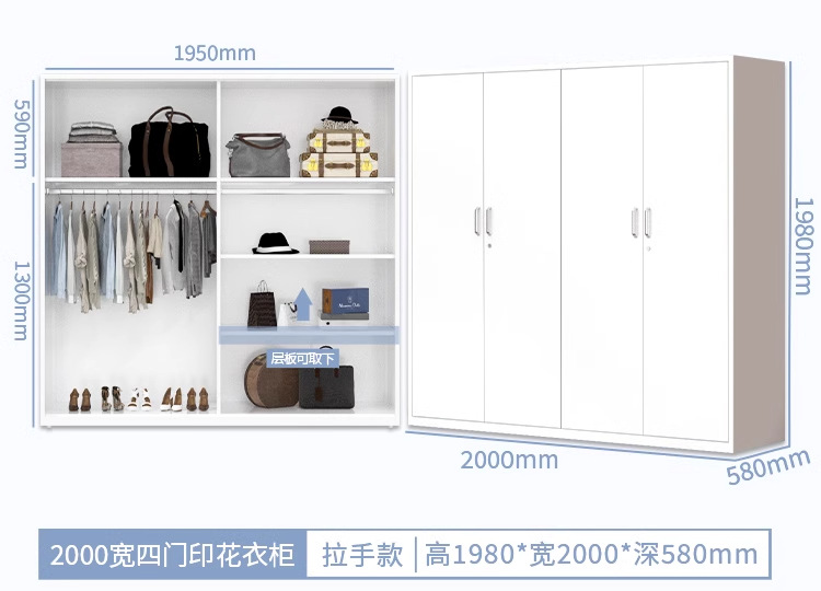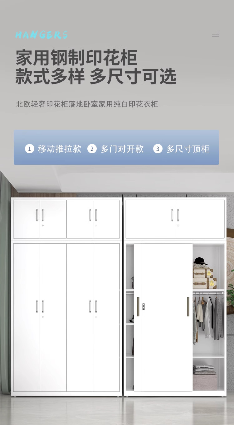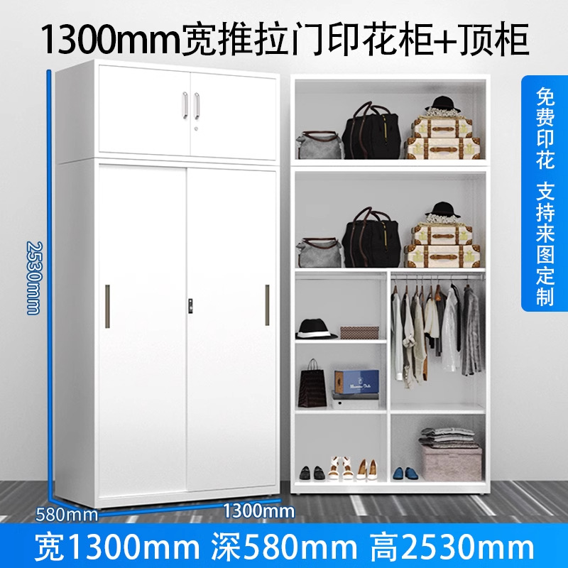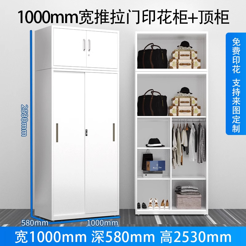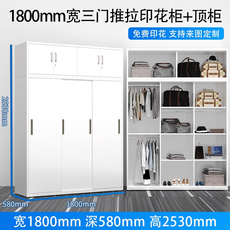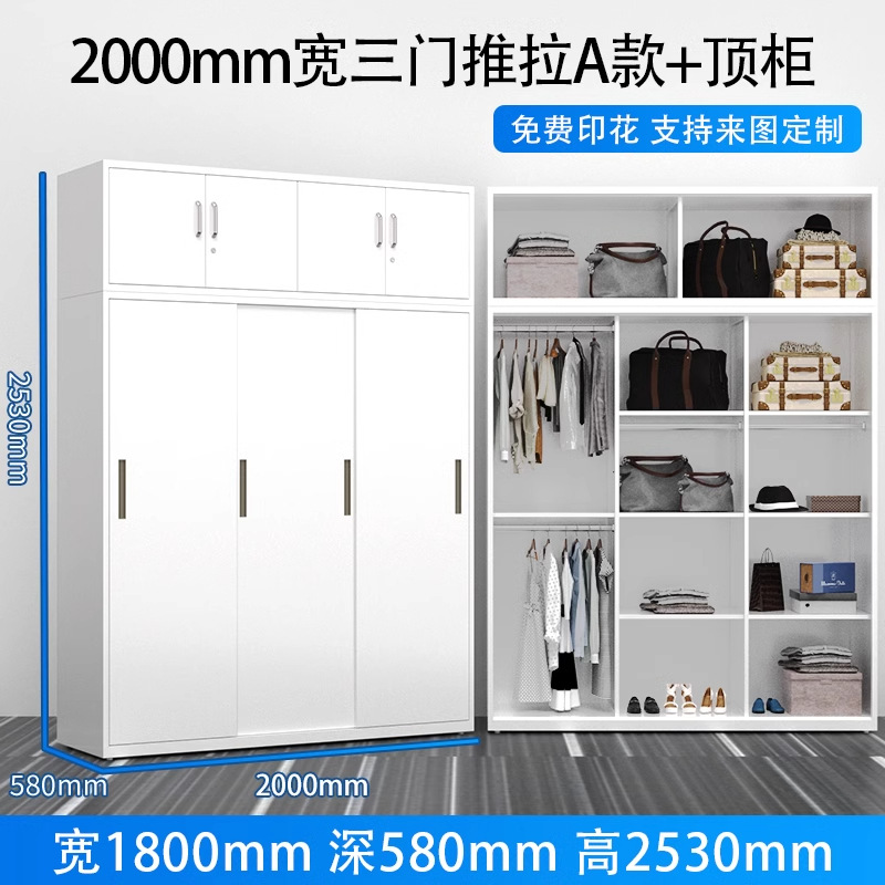 铁皮衣柜带锁家用钢制卧室推拉门儿童经济简易衣柜阳台储物柜柜子