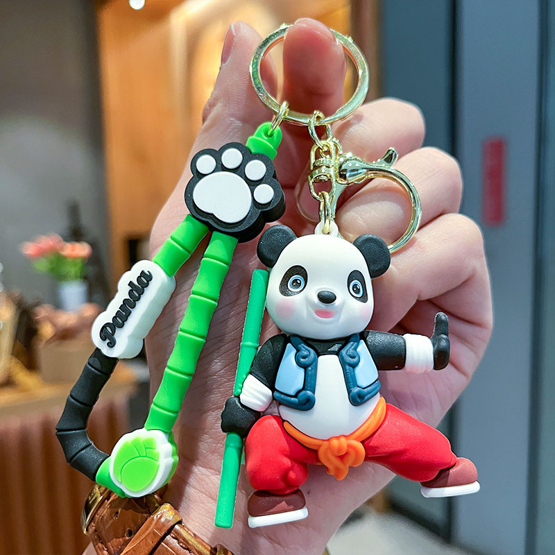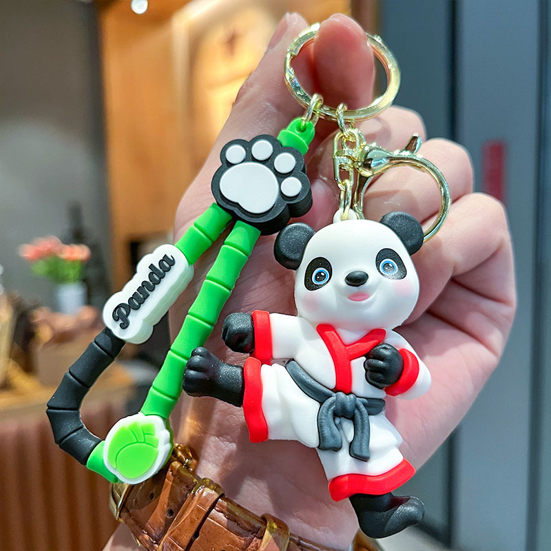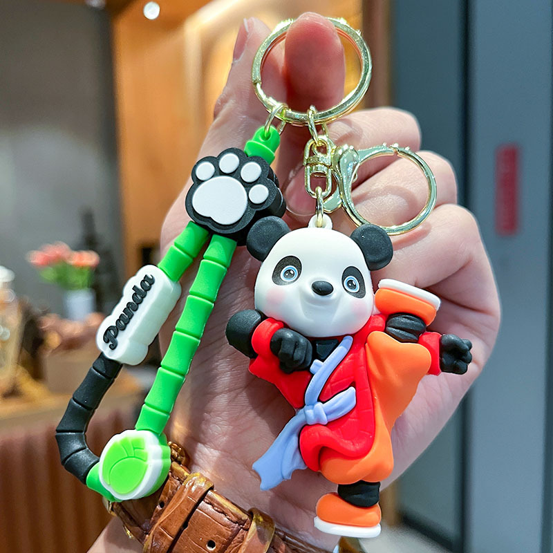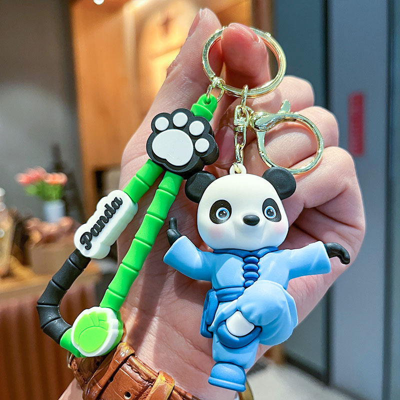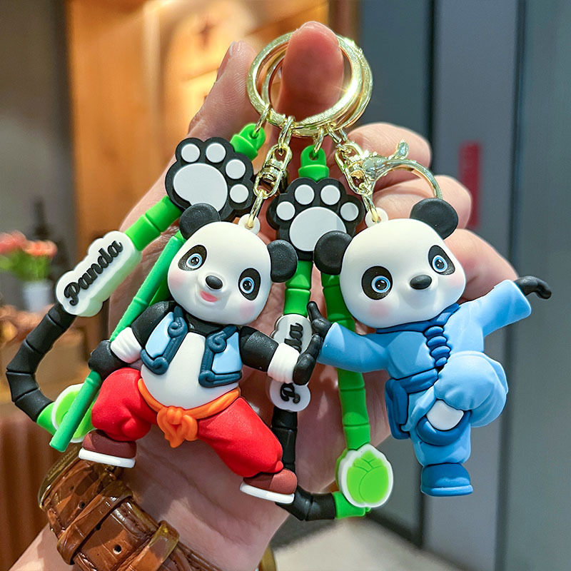 可爱国潮功夫熊猫立体公仔汽车钥匙扣挂件挂饰夜市情侣礼物批发