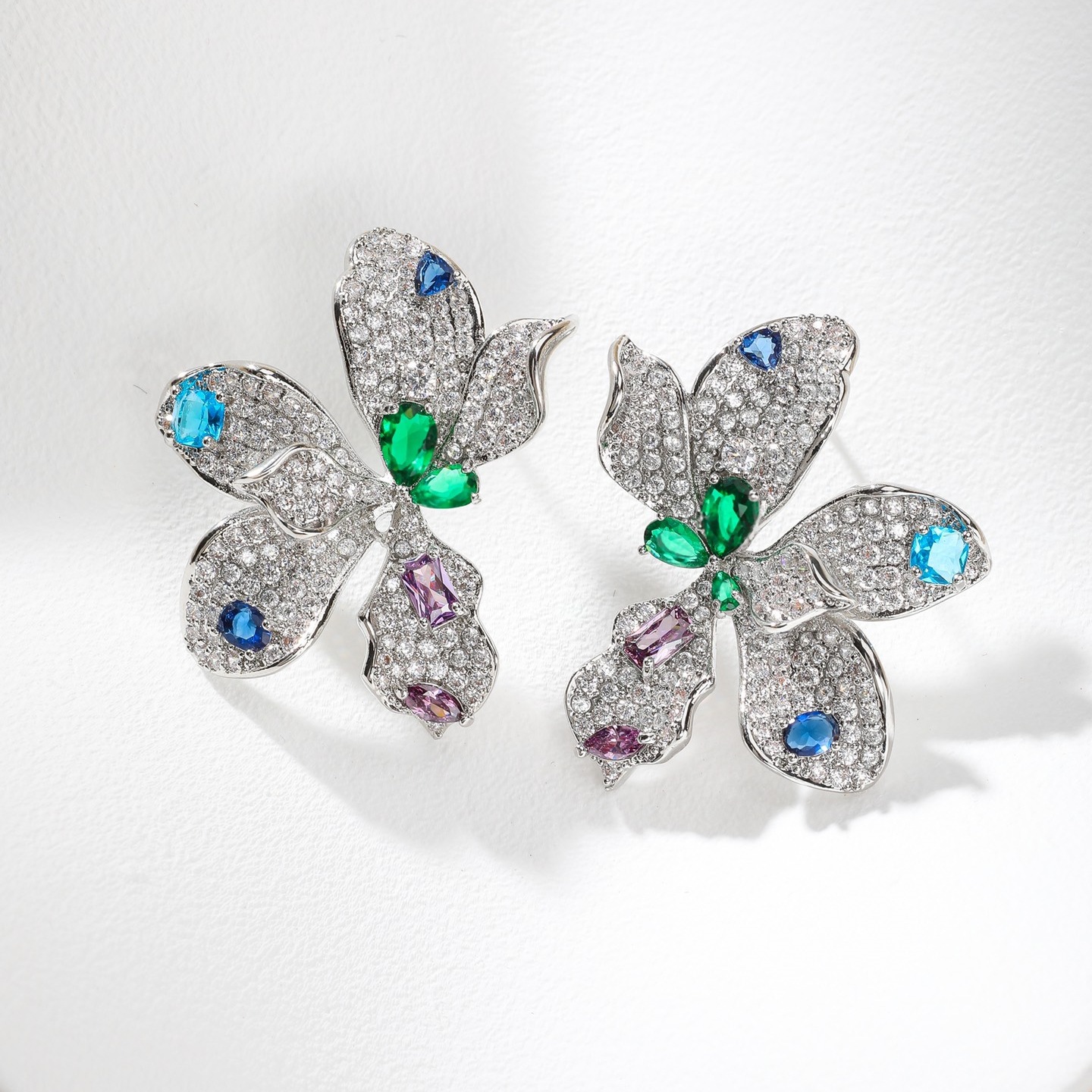 时尚微镶彩锆立体花朵耳环轻奢气质s925银针耳饰小众欧美重工首饰