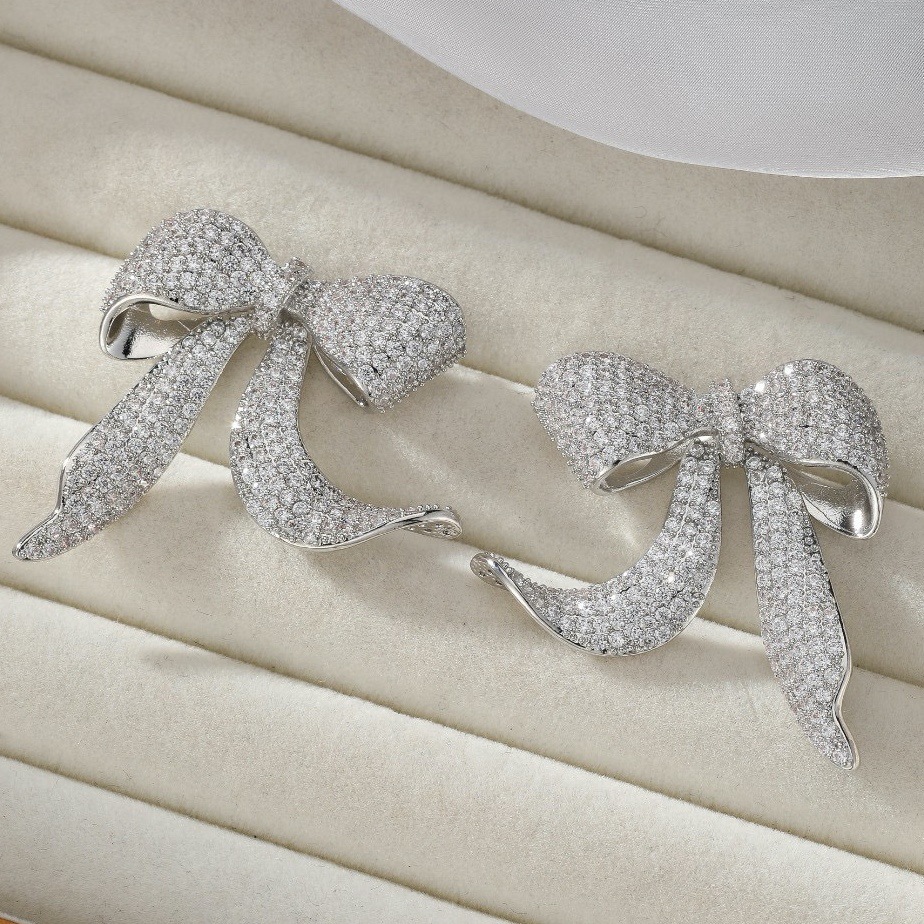 时尚经典微镶精致立体蝴蝶结耳环小众s925银针轻奢气质锆石耳饰
