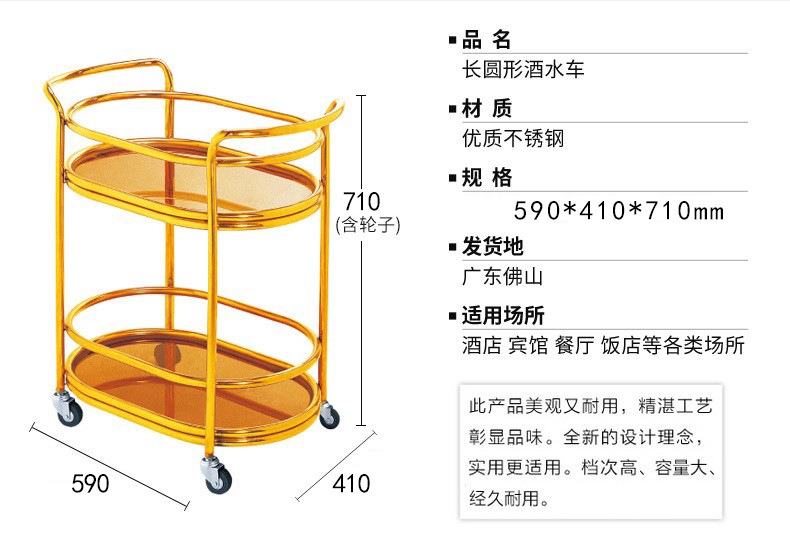 餐厅酒店酒水车实木茶水车移动简约美容餐边小推车圆形饮料椭圆车