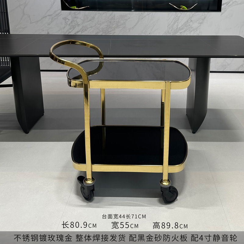 手推两层服务车酒店多功能推车高档次酒水车超静音轮子蛋糕果盘车