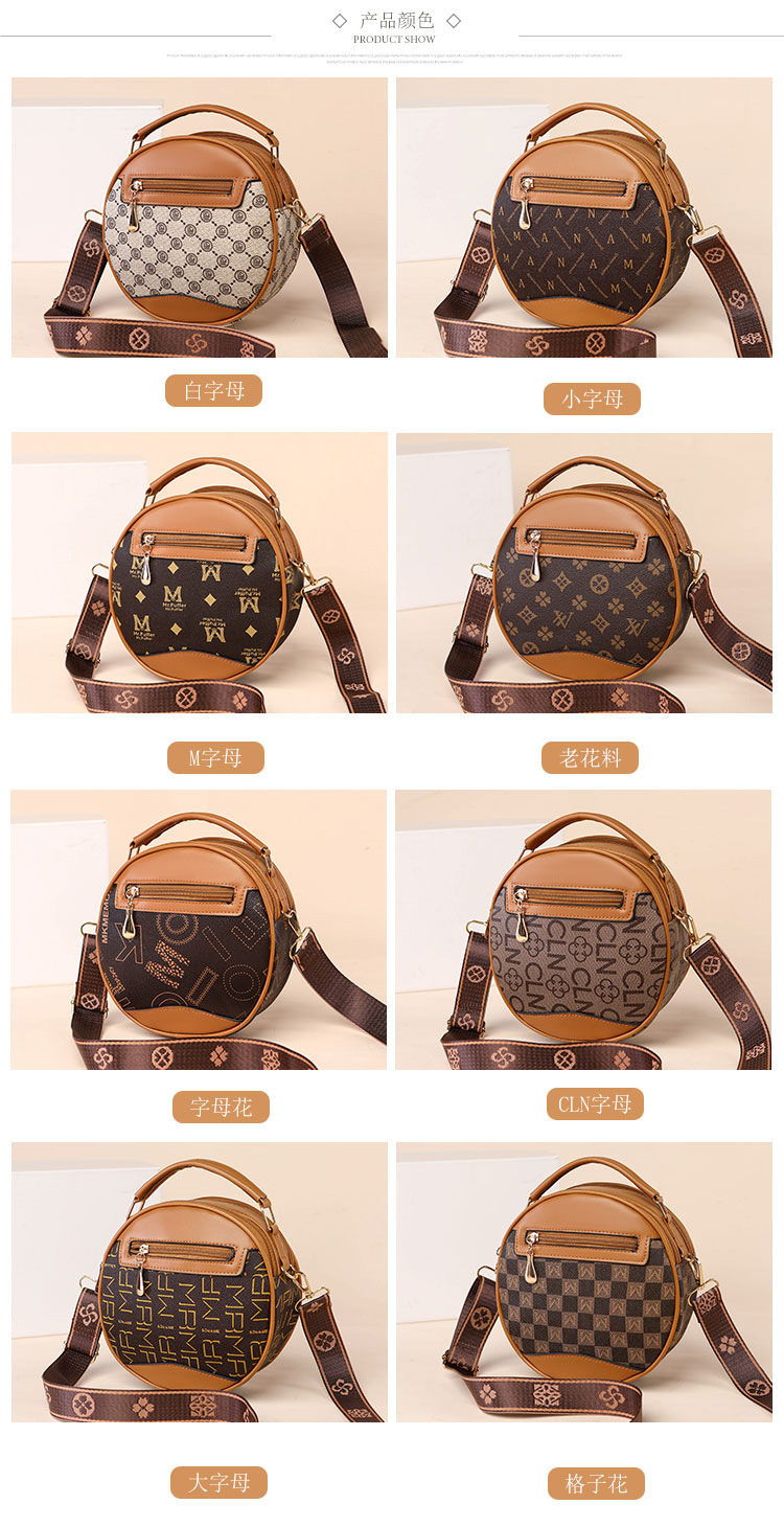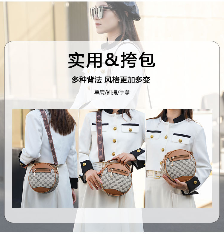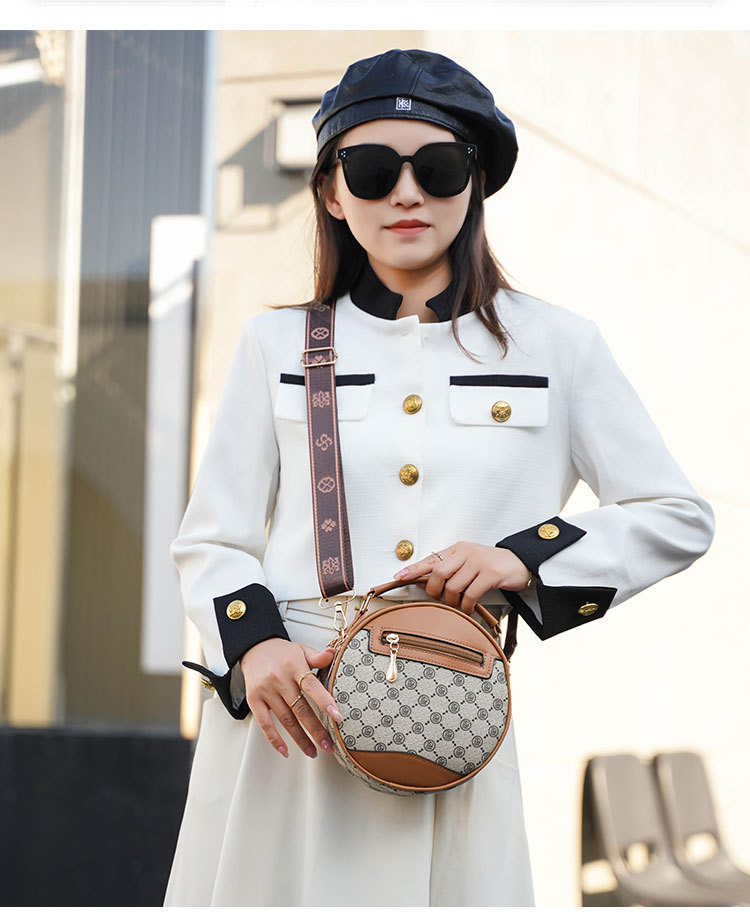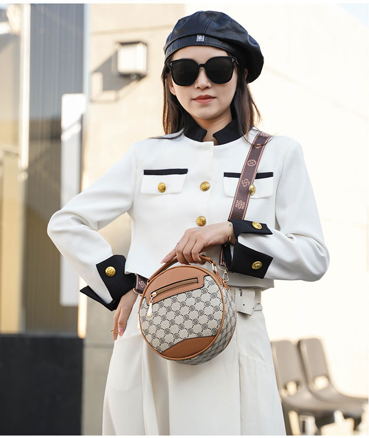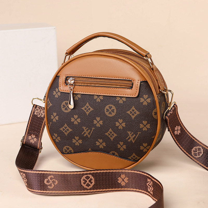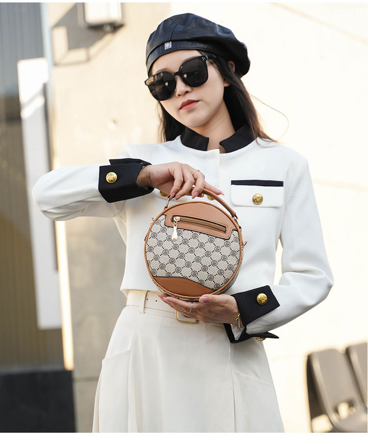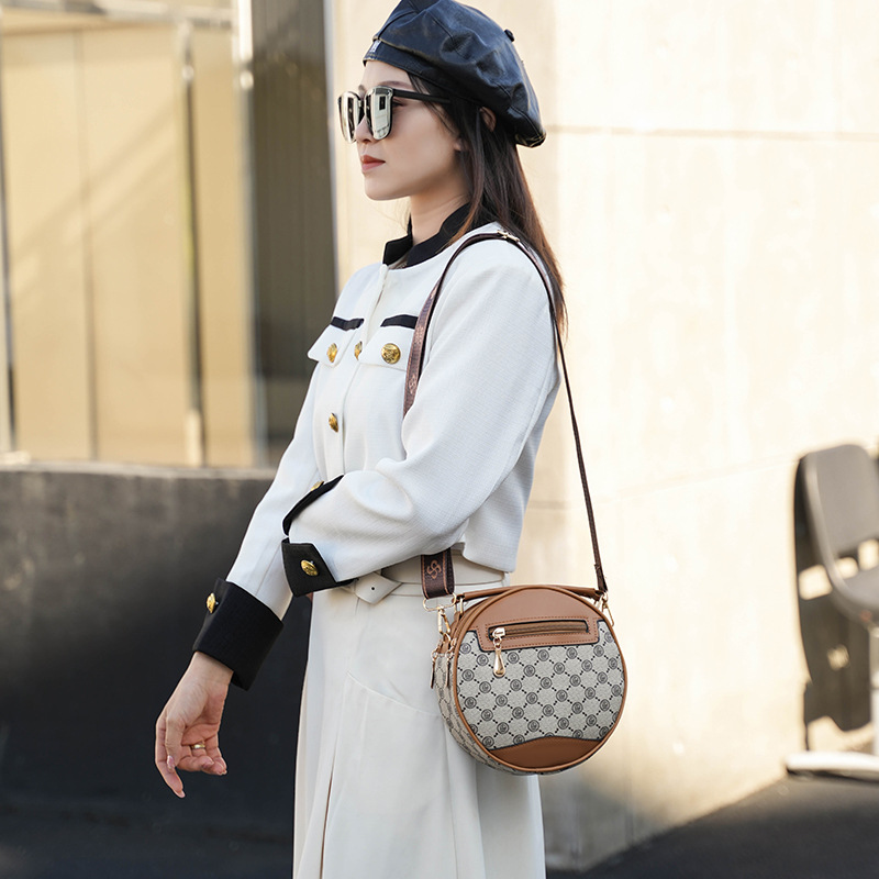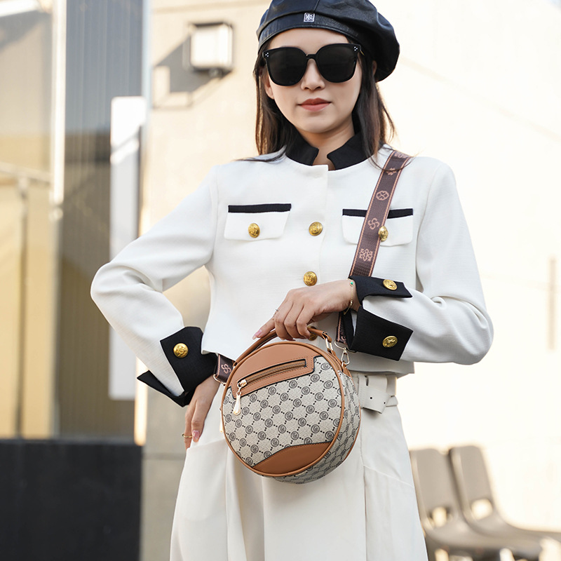 高颜值老花包包水桶包小圆包手提圆筒女时尚小包包老花单肩斜跨包