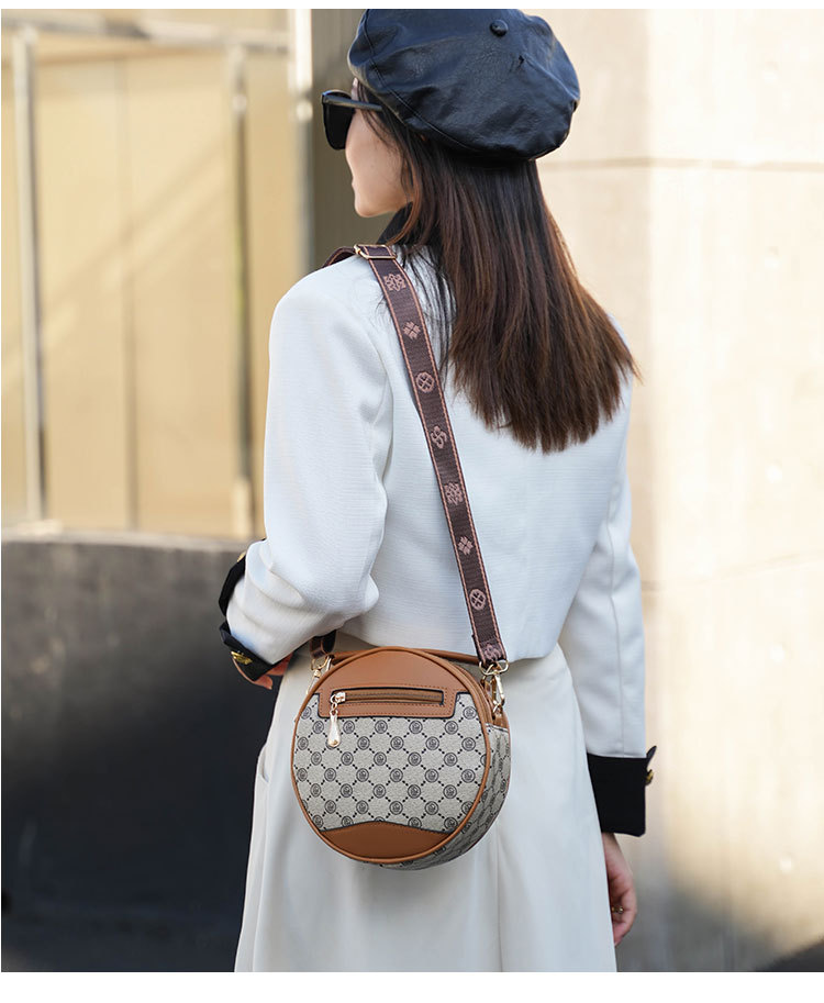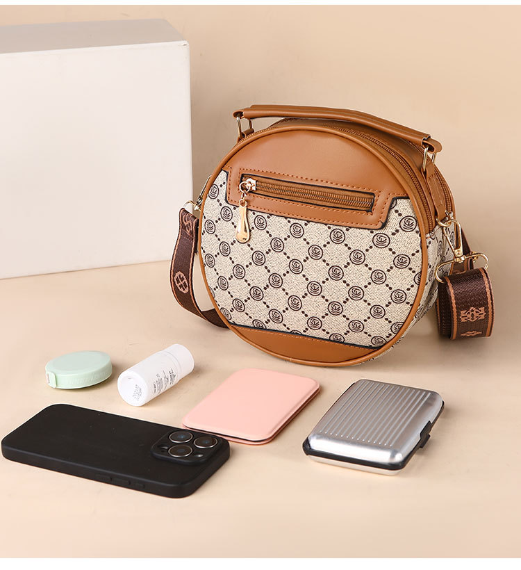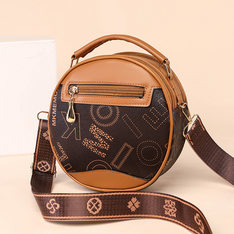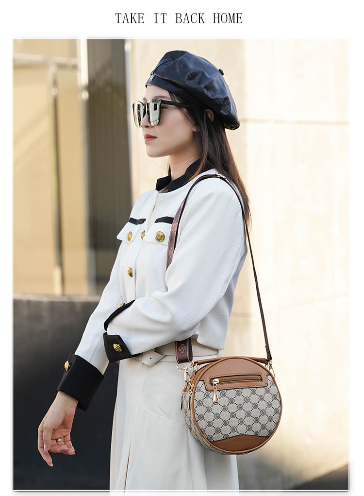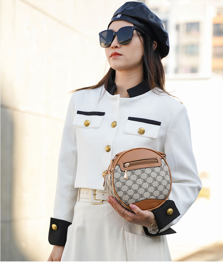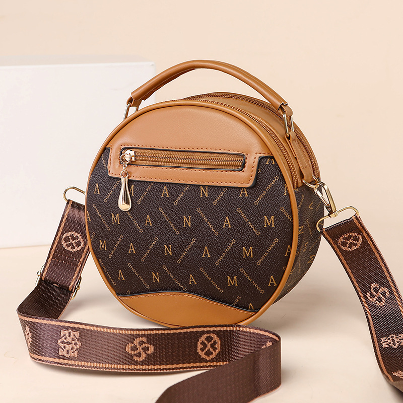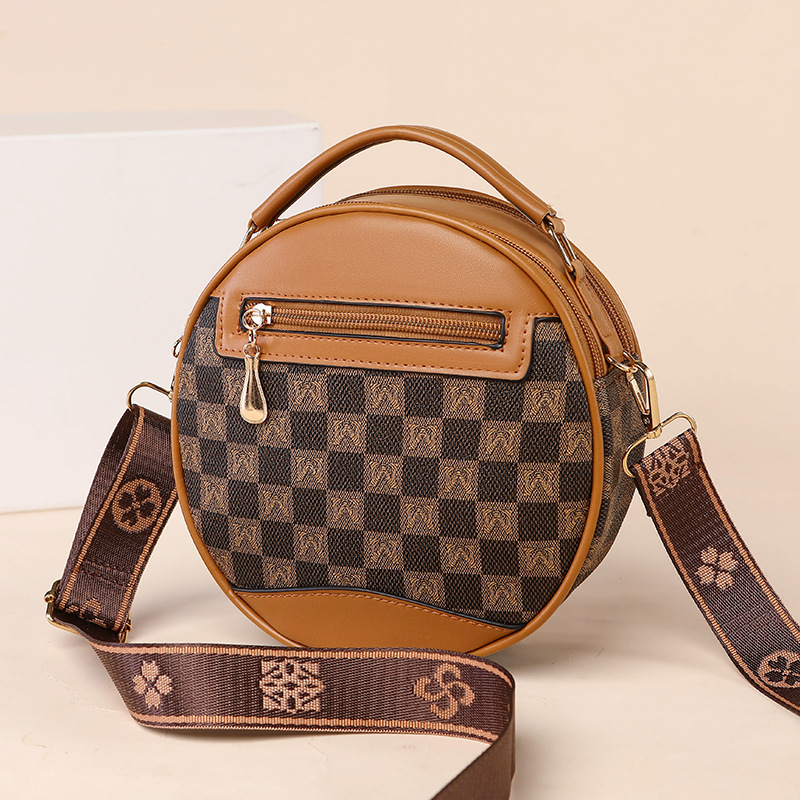 高颜值老花包包水桶包小圆包手提圆筒女时尚小包包老花单肩斜跨包