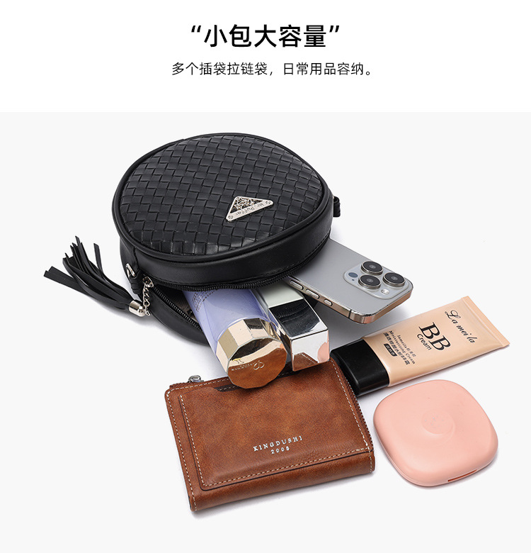 包包女2024新款编织包秋夏女生mini流苏小圆包零钱小巧手机包bags