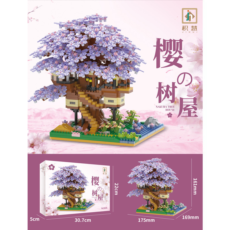 兼容乐高积木花微颗粒樱花树屋女生礼物跨境摆摊实体益智玩具批发