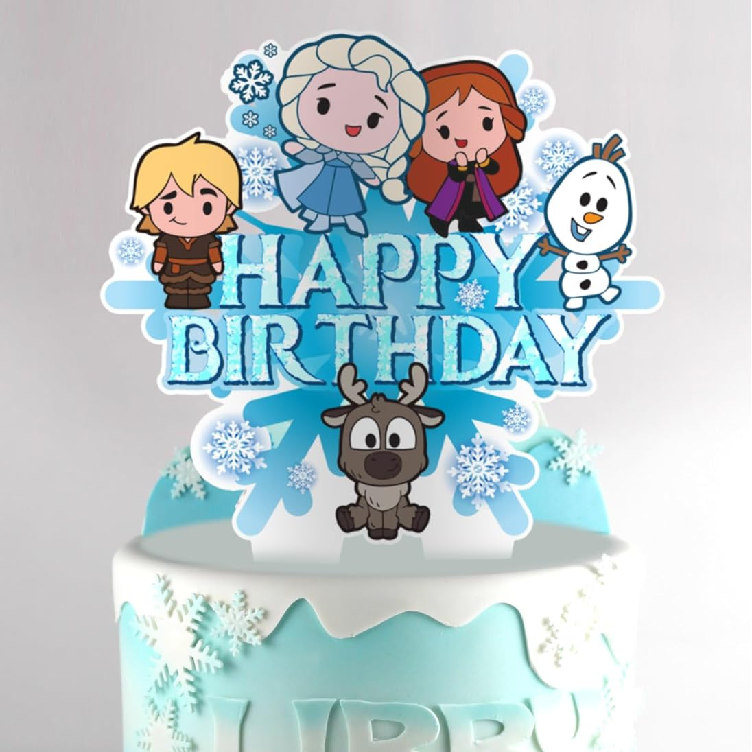 Q版图案冰雪奇缘公主王子蛋糕插排 麋鹿雪宝迪施尼生日蛋糕装饰