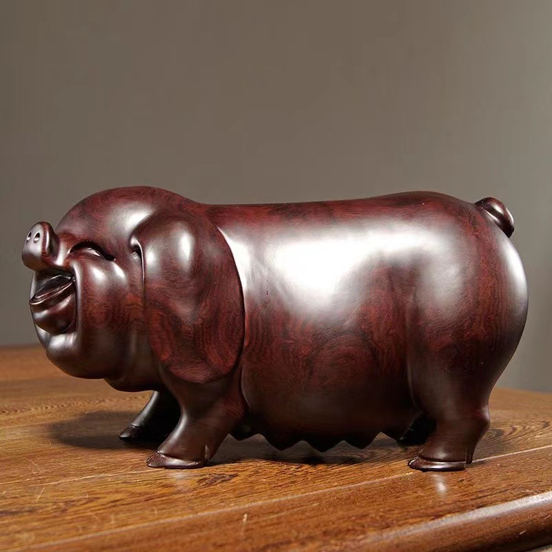 花梨木雕三合猪黑檀动物一对实木质猪工艺品十二生肖摆件家居装饰