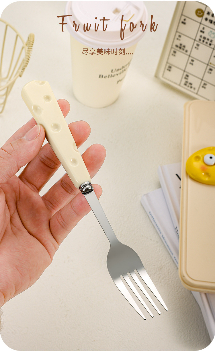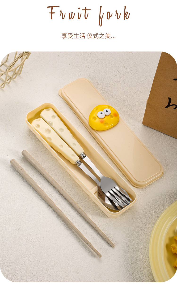 批发学生便携三件套餐具韩式奶酪不锈钢勺筷子套装高颜值卡通饭勺