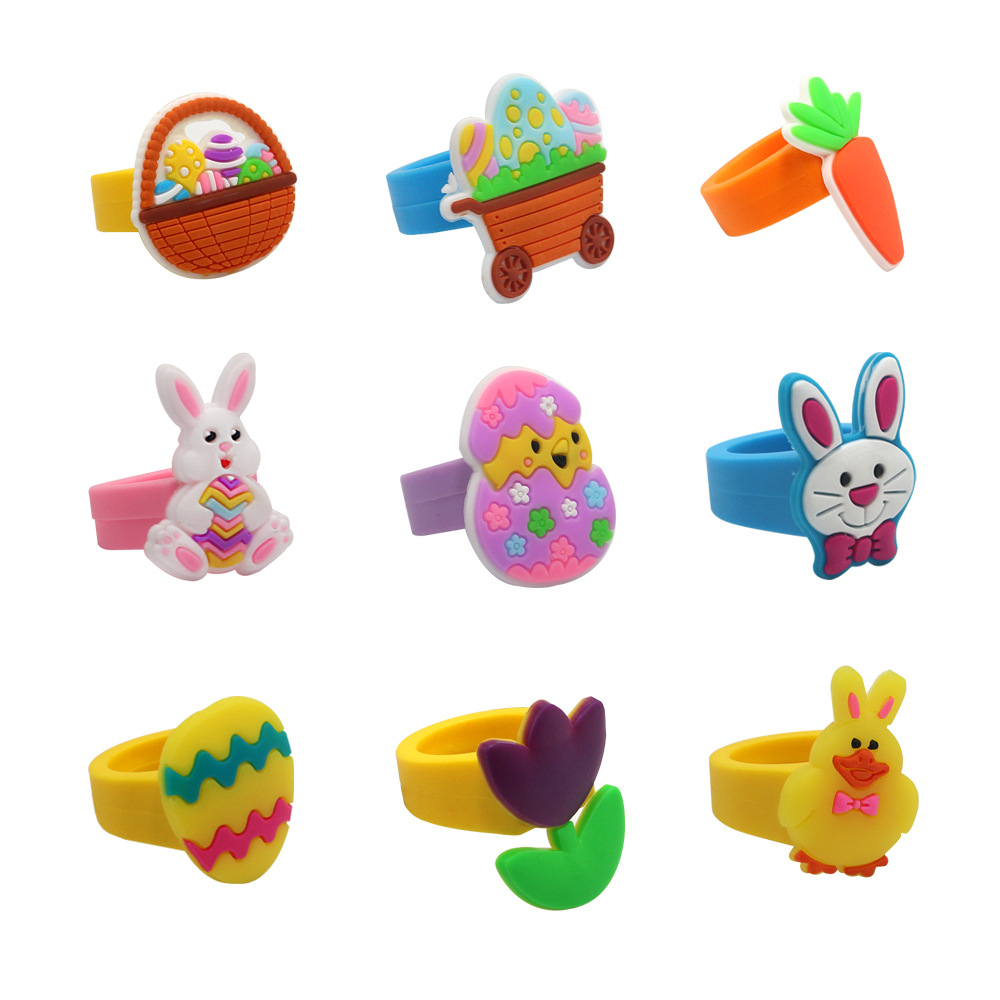 2023跨境新款亚马逊欧美复活节戒指 礼品儿童饰品PVC软胶批发