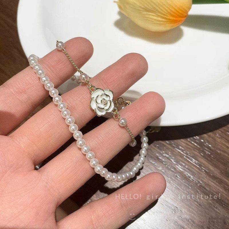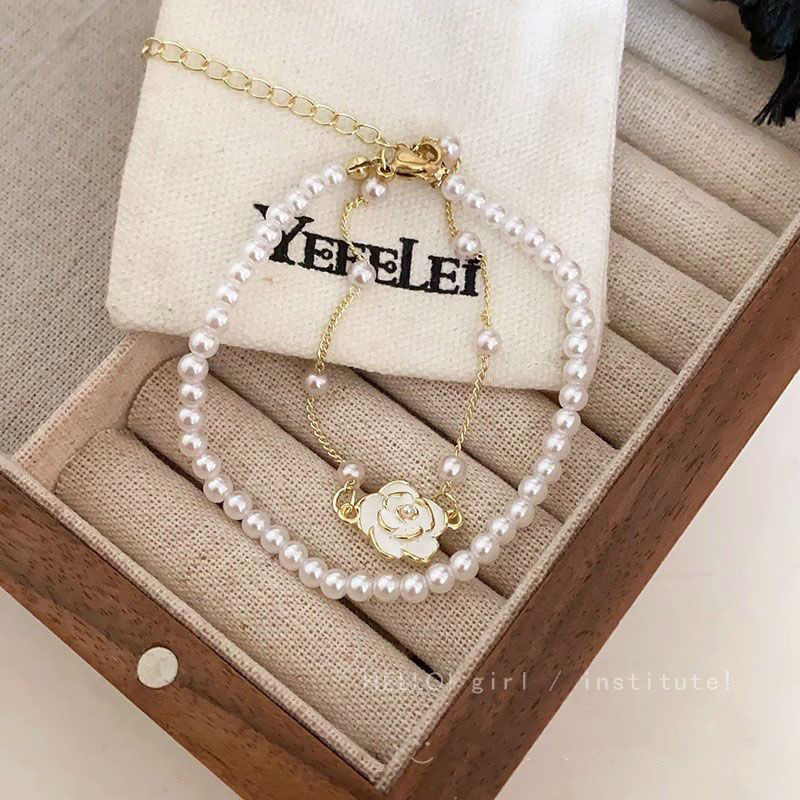 camellia pearl bracelet for women 2024 new light luxury minority exquisite accessories cold wind double layer twin bracelet