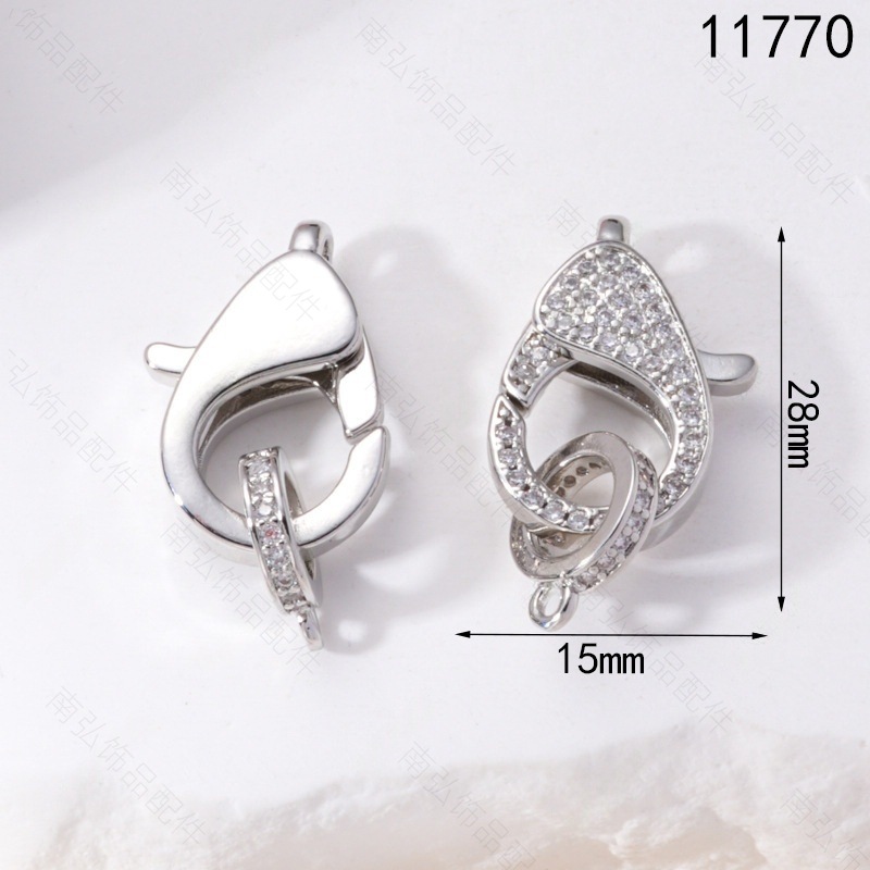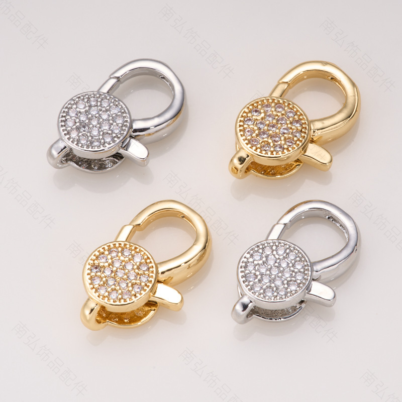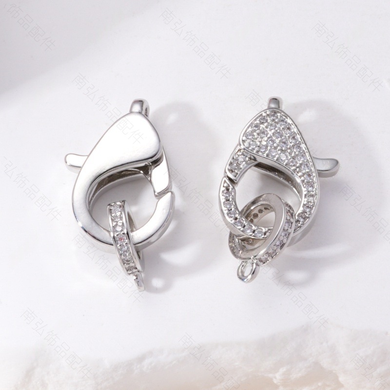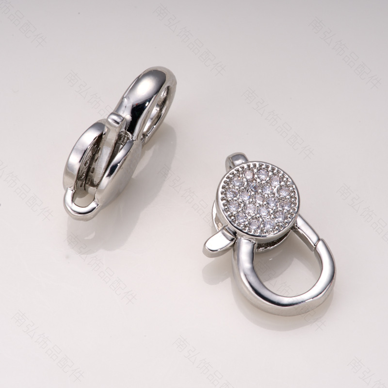 珍珠项链扣满镶锆石重工龙虾扣弹簧扣手工收尾扣毛衣链diy配件