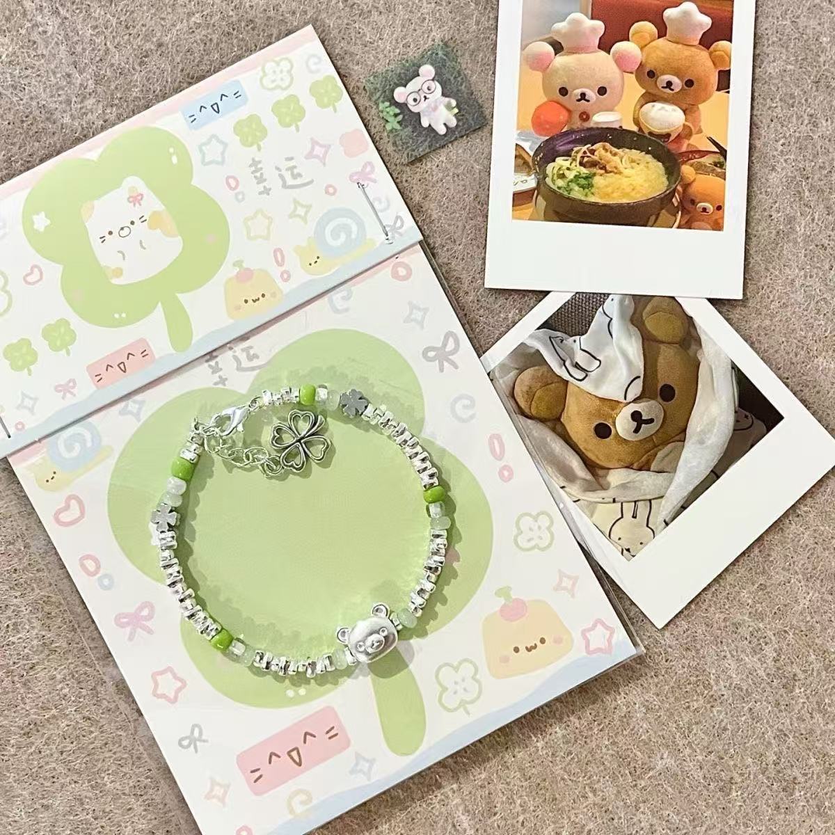 高颜值多巴胺四叶草小熊头手链米珠可爱串珠随心小清新碎银子手串