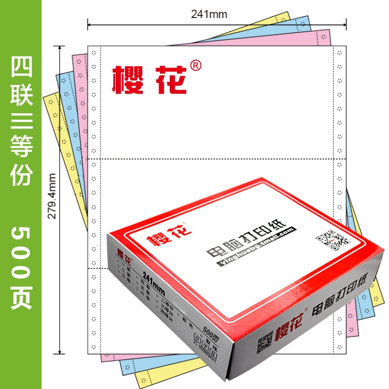 樱花针式电脑打印纸三联二等分二联a4纸整箱发货单定做电脑打印纸