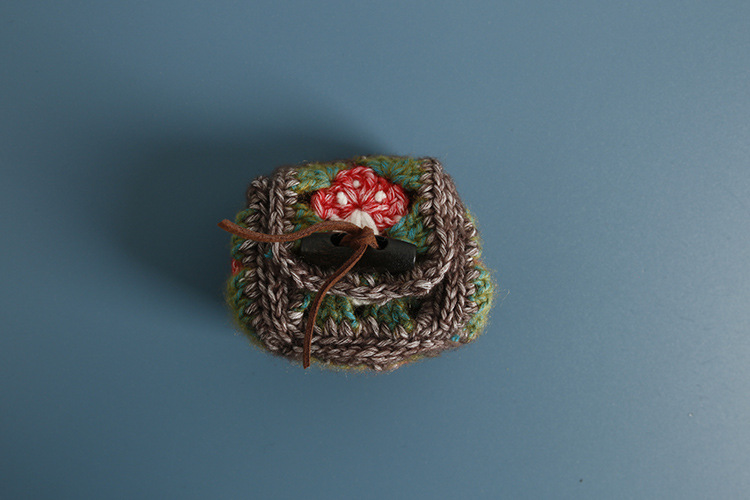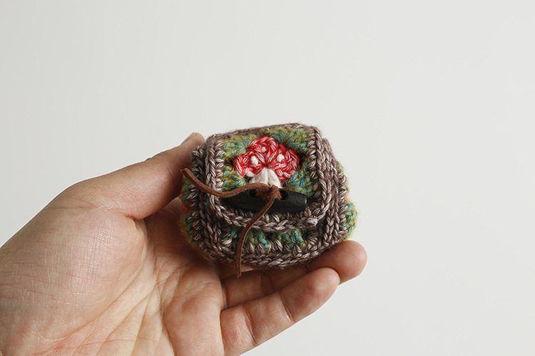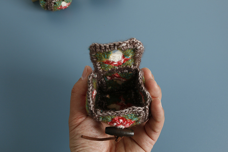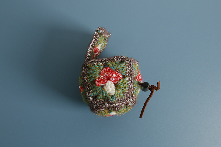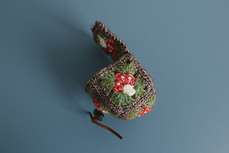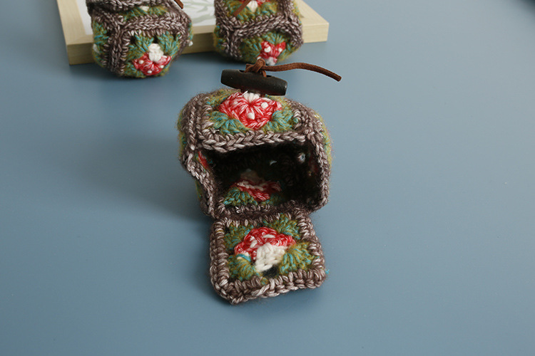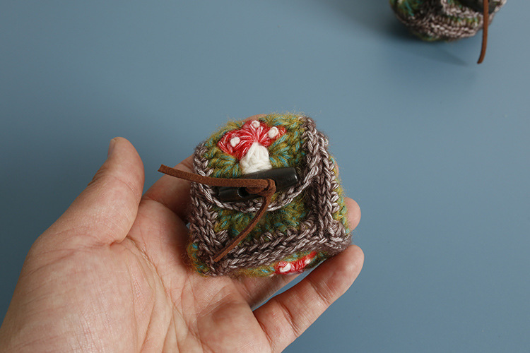 毛线钩针可爱蘑菇耳机包 手工编织迷你祖母格花片拼接包钩织成品