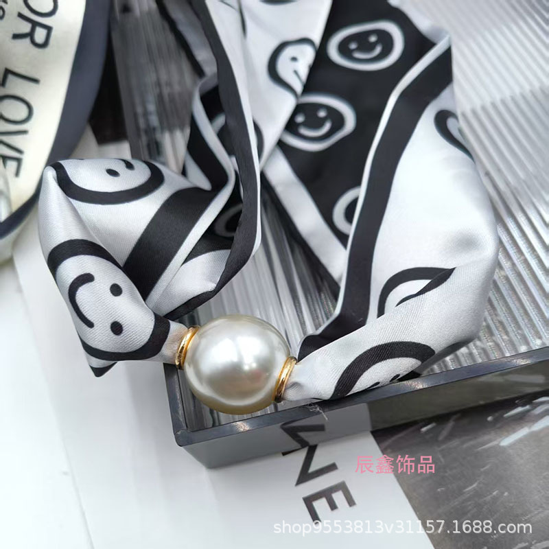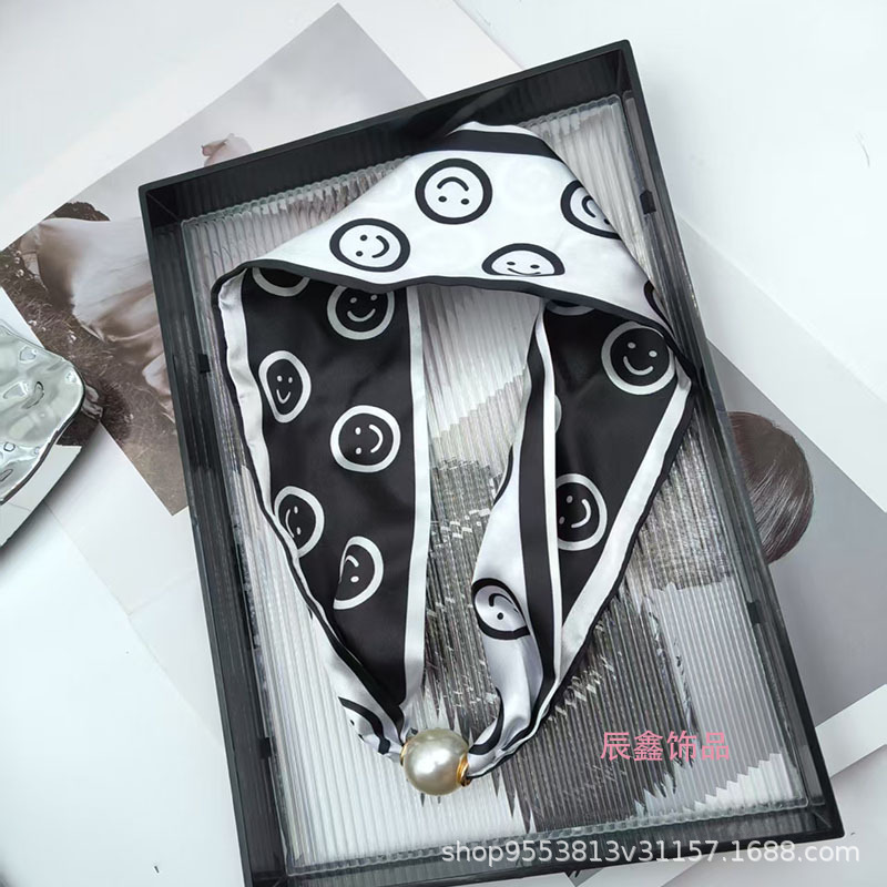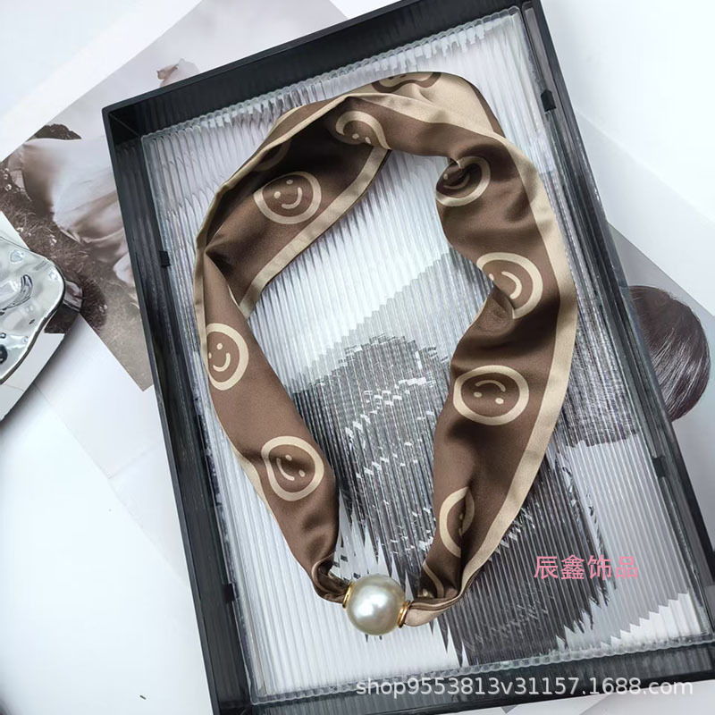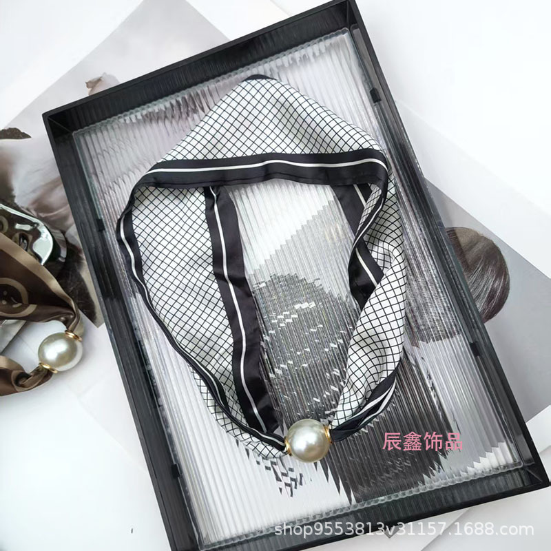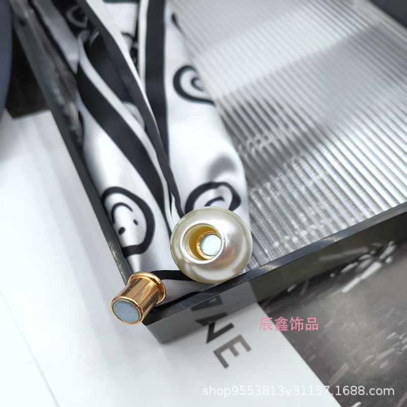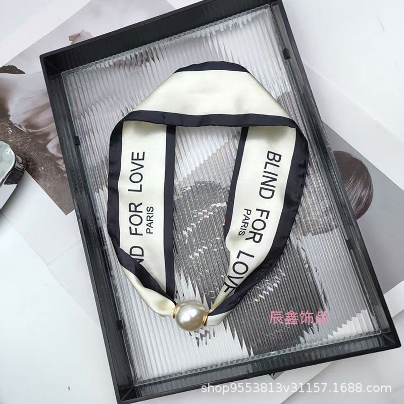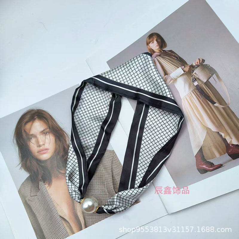 磁扣小丝巾女珍珠懒人护颈秋季2024新款领巾百搭配西装磁吸扣项链