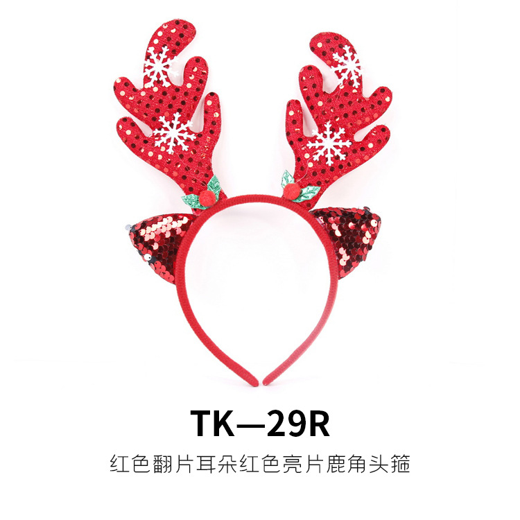 圣诞树亮片发箍成人儿童圣诞节装饰头饰用品节日派对麋鹿角头箍发