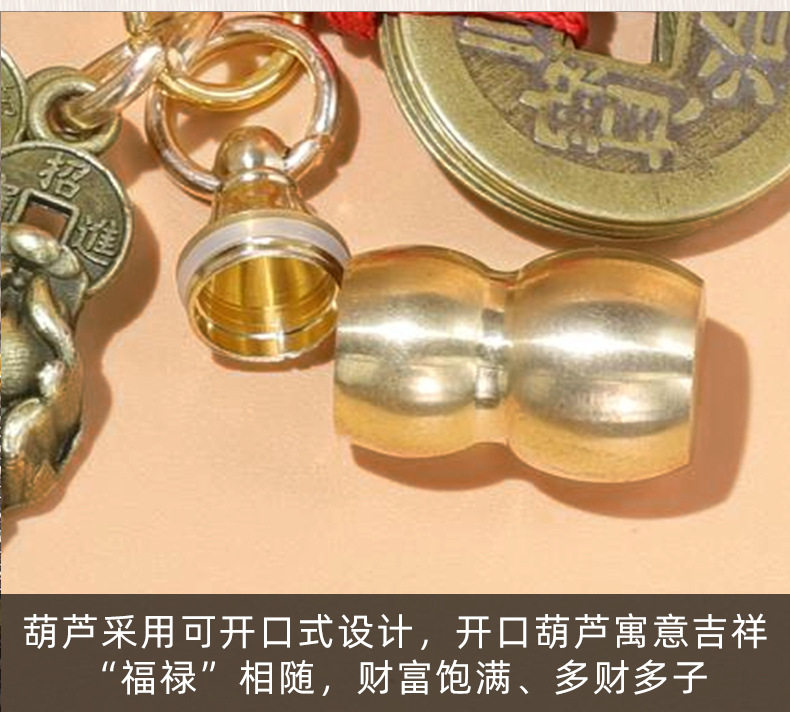 red rope qing dynasty five emperors' coins three ghost turn copper gourd(红绳五帝钱三鬼转转铜葫芦款) USD $0.56 97792 piece available