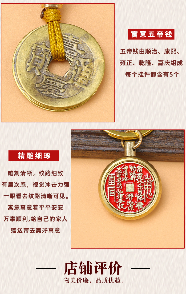 brass mountain ghost money keychain qing dynasty five emperors‘ coins mountain ghost turn cinnabar key pendants xiangyun five emperors copper coins pendant