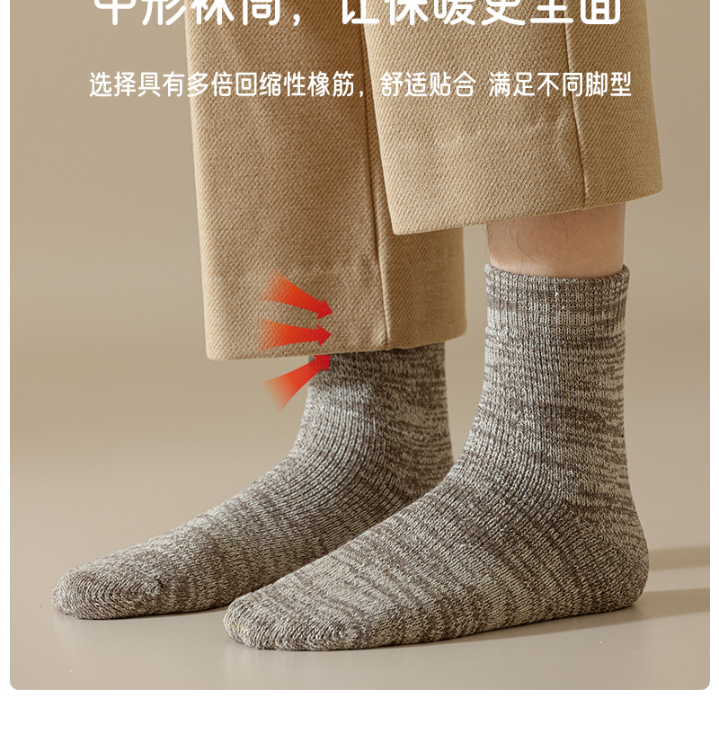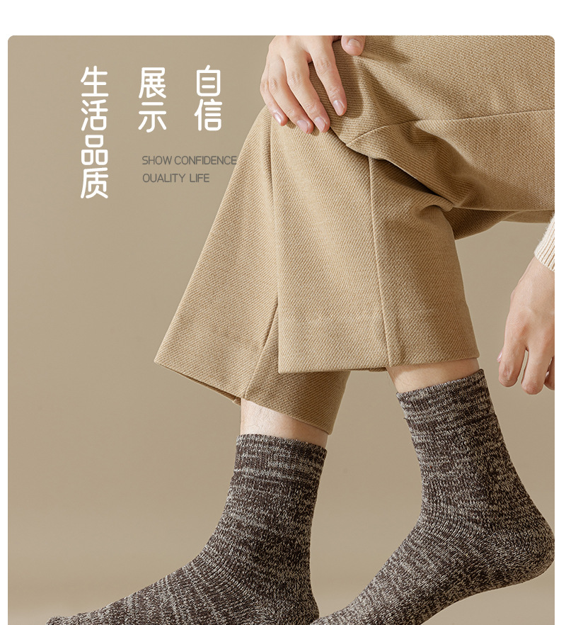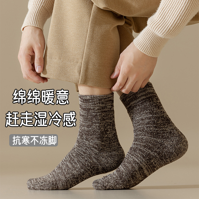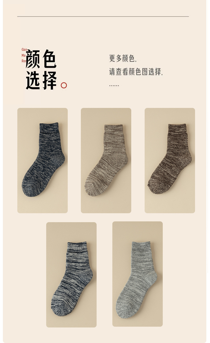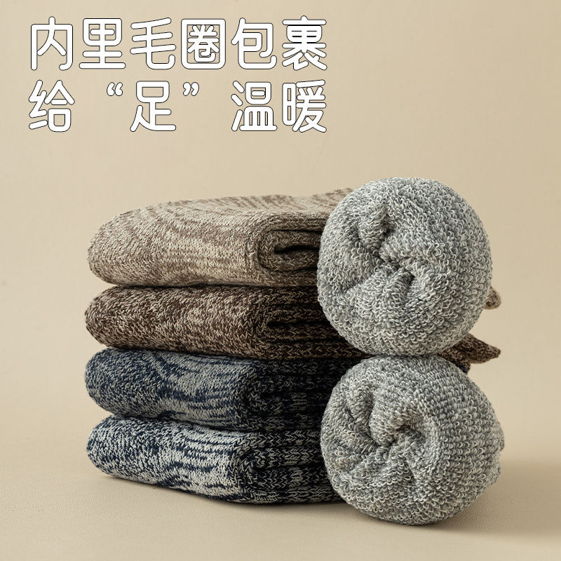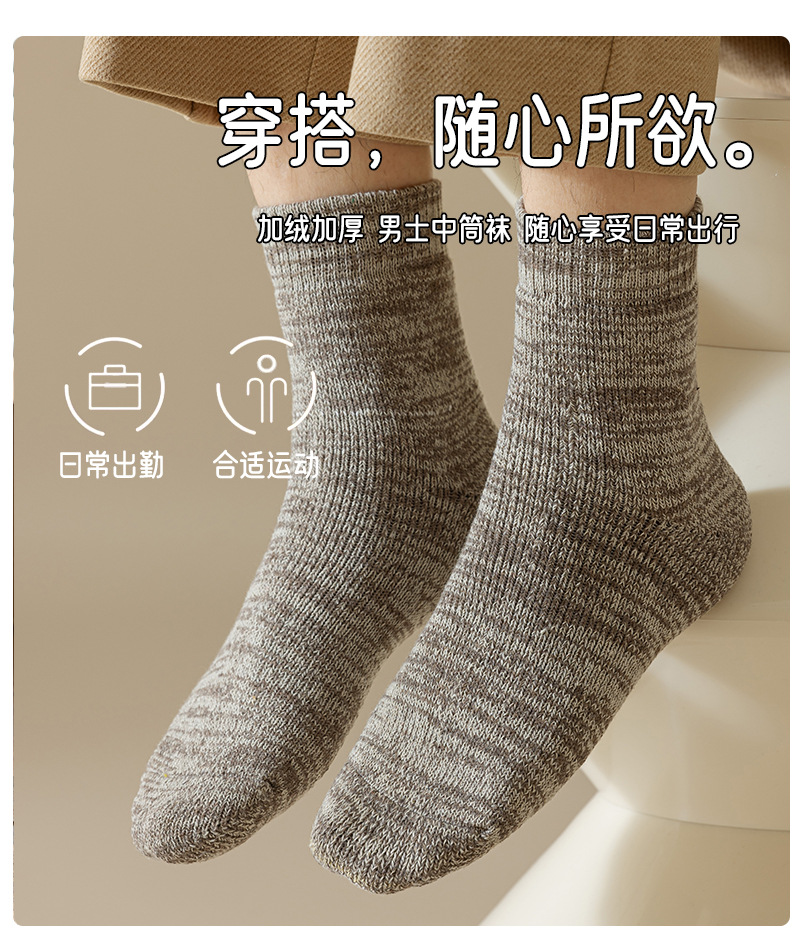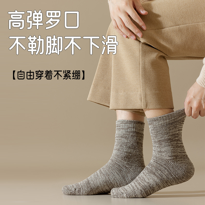 冬季袜子男中筒袜民族风自由并线毛圈加绒加厚保暖纯色男士羊绒袜
