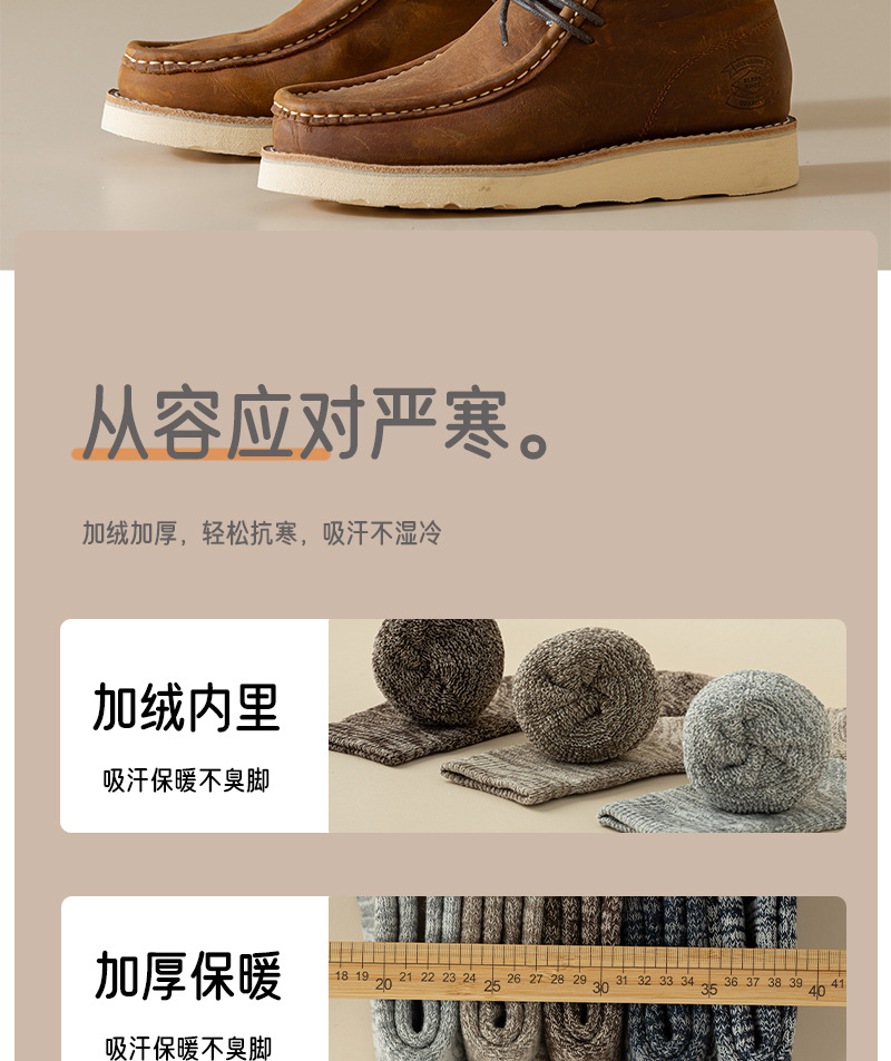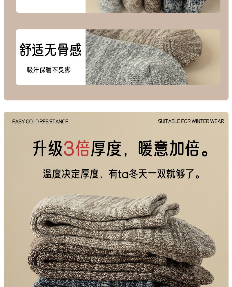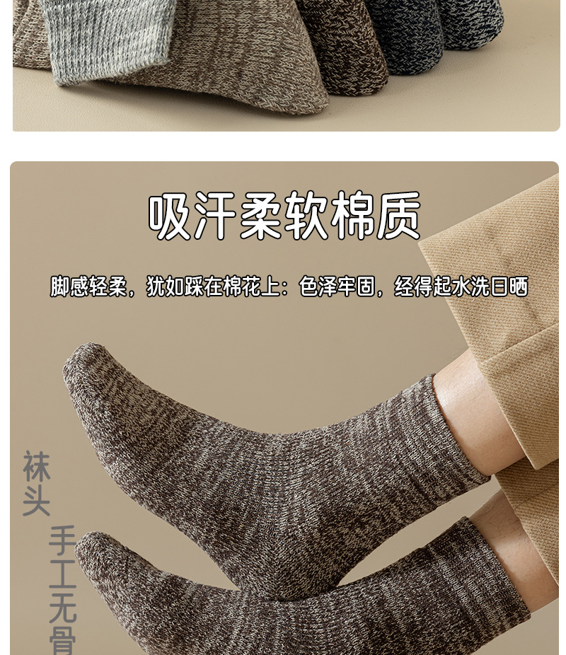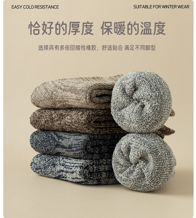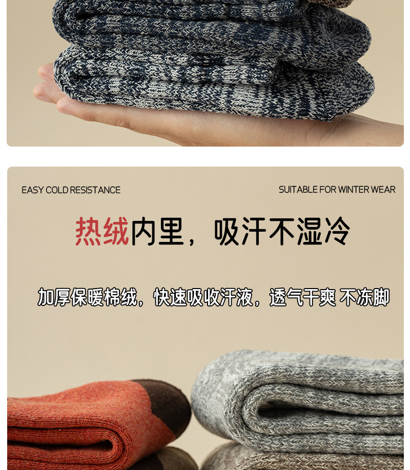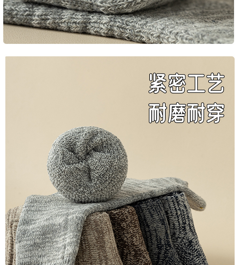冬季袜子男中筒袜民族风自由并线毛圈加绒加厚保暖纯色男士羊绒袜