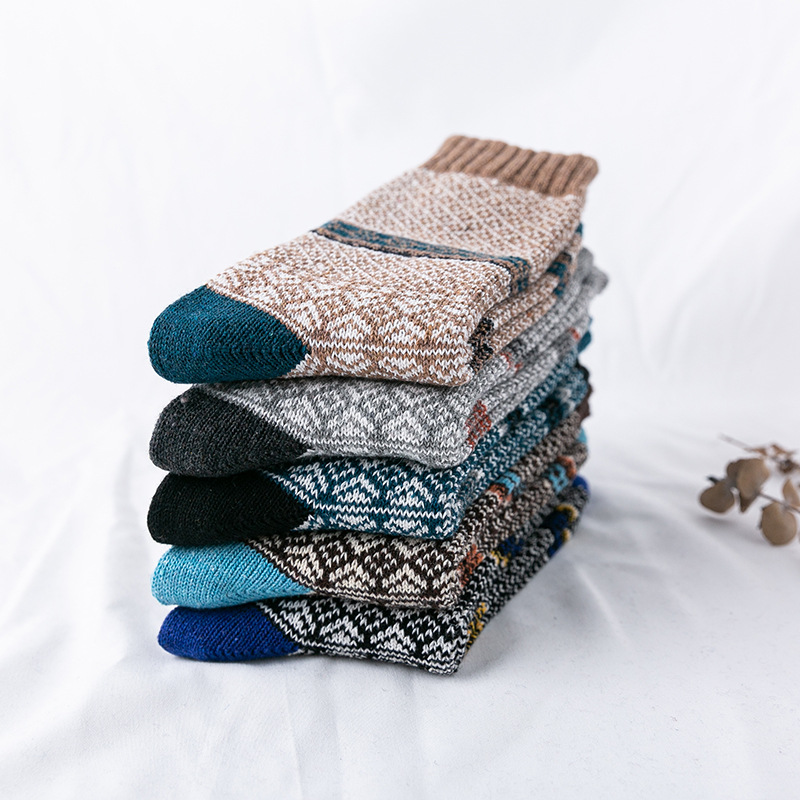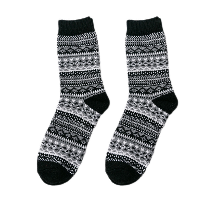 亚马逊外贸 男士冬季加长加厚兔羊毛袜子民族风粗线中筒袜 速卖通