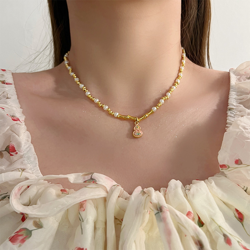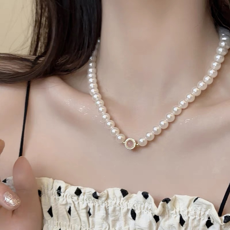 施家珍珠项链女小众轻奢设计高级感时尚气质锁骨链颈链毛衣链珠链