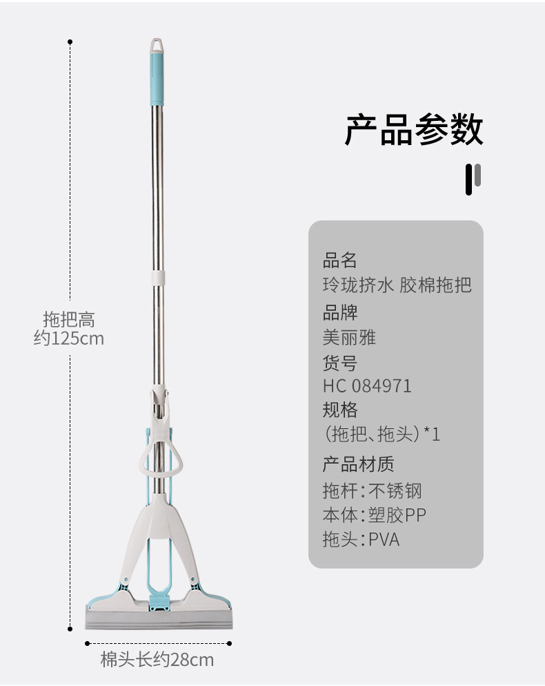 pva mop (1 mop head in total)(胶棉拖把(共1拖头)) USD $4.91 732 piece available