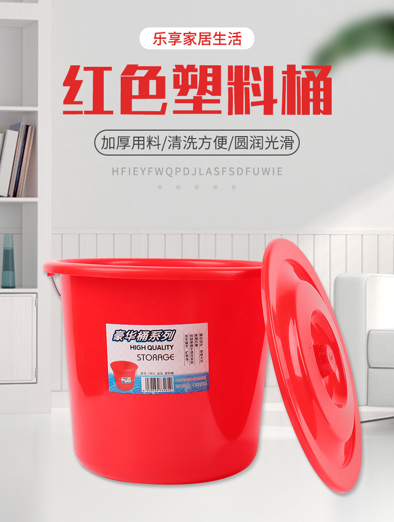 红色大号桶家用加厚塑料储水桶带盖水桶可印刷塑料水桶提手学生桶