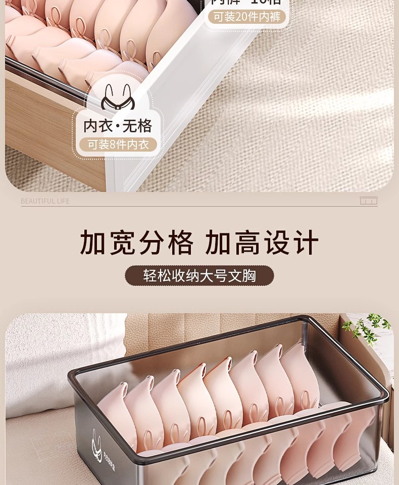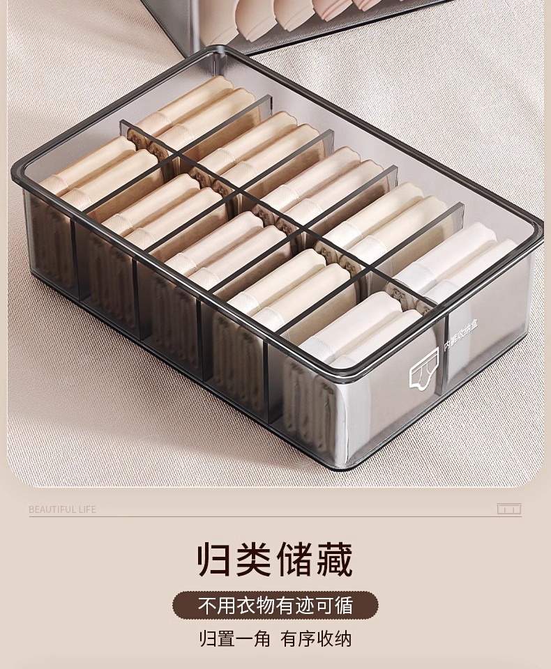 佳帮手内衣内裤袜子三合一收纳盒家用贴身衣物分格神器整理盒带盖