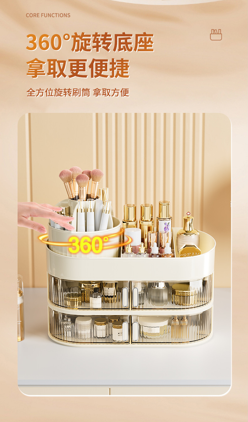化妆品收纳盒高级奶油风桌面梳妆台化妆工具收纳口红护肤品收纳盒